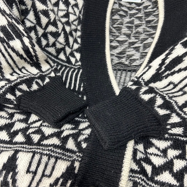 ヨーロッパ古着 80s~90s モノトーン幾何学模様 ウールニットカーディガン 白黒 大きめ M オールド ヴィンテージ ユーロ L~XL ジャガードニット●302