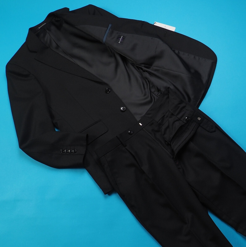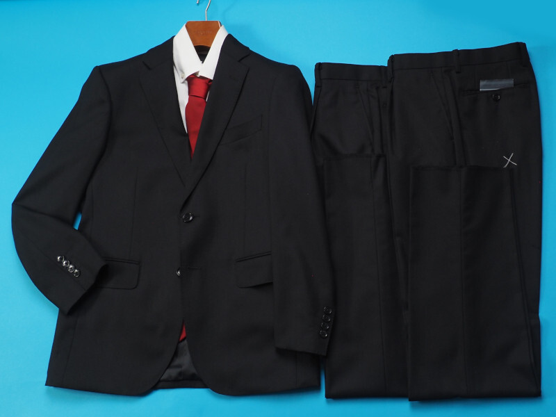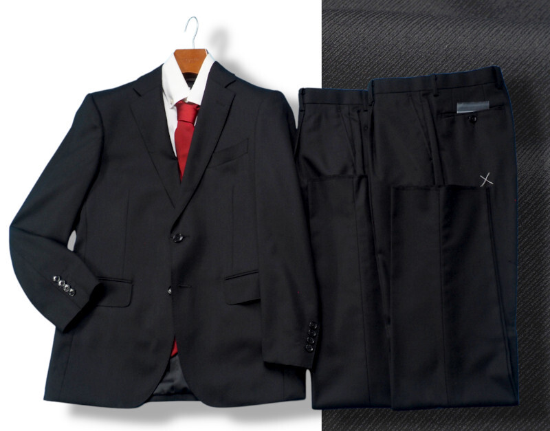 新品 大手百貨店扱い 秋冬総裏 ウール混 カルゼ無地 ツーパンツ スーツA5黒(A) 1146272