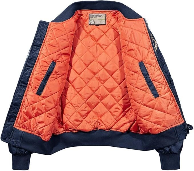 本格的なMA-1のディテール。今季人気のスタイルを取り入れるなら、秋冬に嬉しいライトアウターが登場しました!表地は光沢があり耐久性に優れたストレッチナイロン繊維を使用し、ワッペンや刺繍でカスタムを加えたモデル!肌触りが良くて洗い易くて、快適な着心地を楽しむことができます。