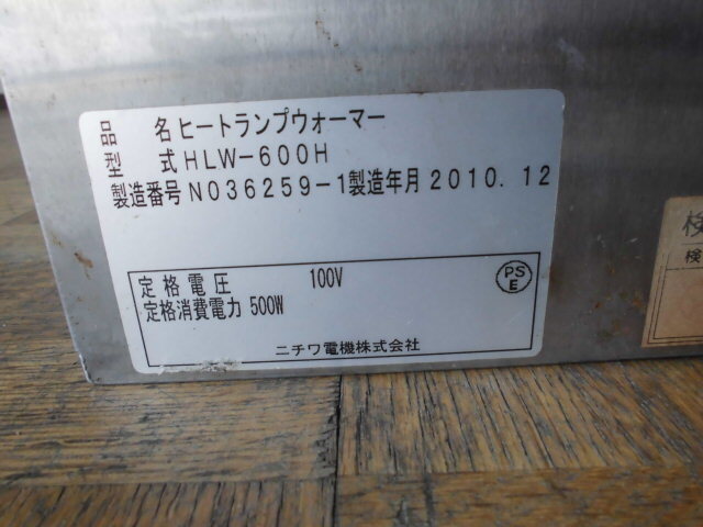 中古厨房 ニチワ 業務用 電気 ヒートランプ ウォーマー 保温機 HLW-600H 100V