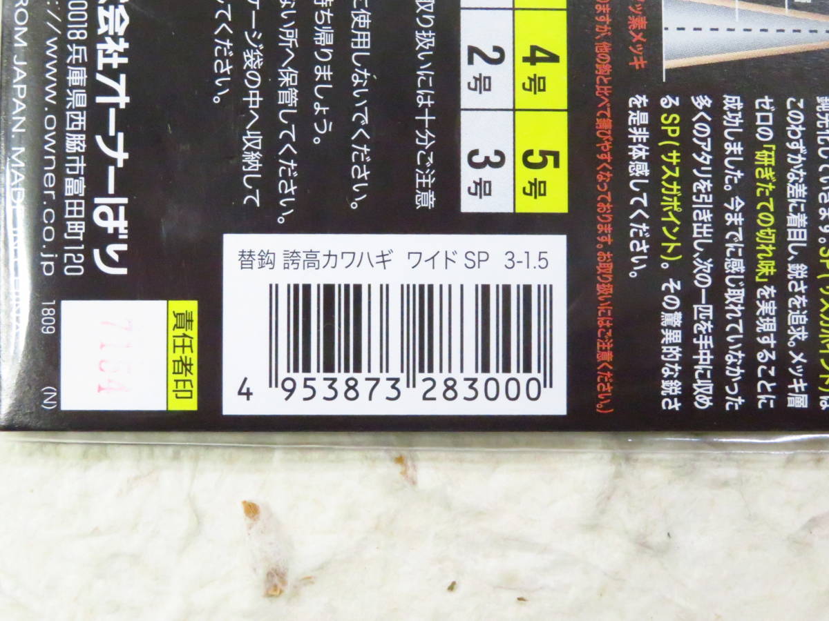 オーナー H-6238 替鈎 誇高カワハギ ワイドSP 3号 5個セット 新品