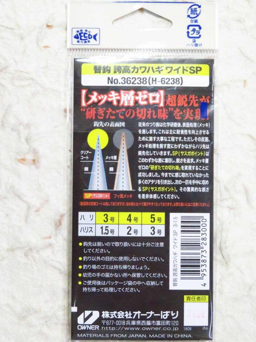 オーナー H-6238 替鈎 誇高カワハギ ワイドSP 3号 5個セット 新品 替針 カワハギ仕掛け カワハギ オーナー針
