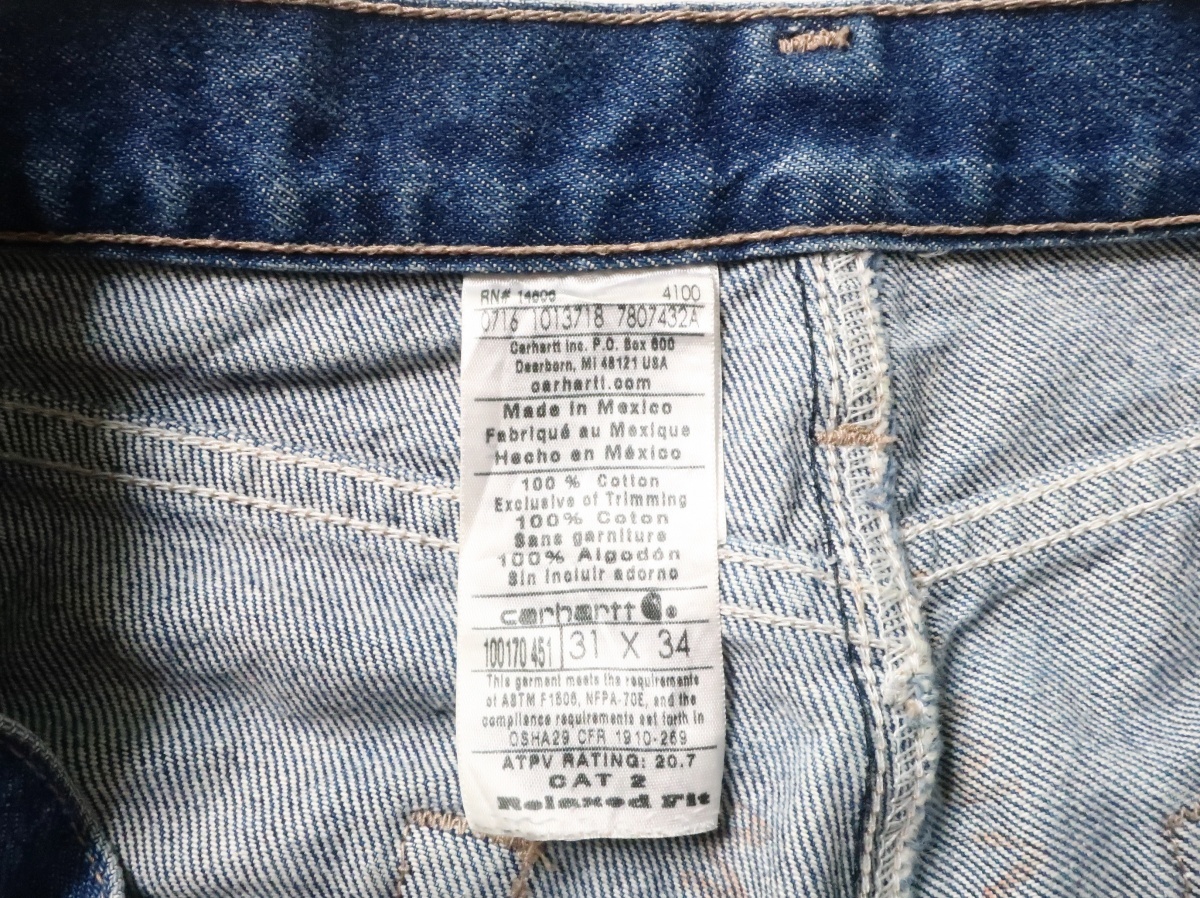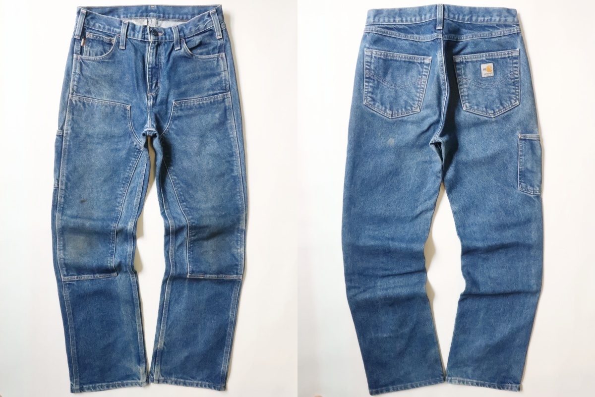 即決★Carhartt メキシコ製 W31 L34 Relaxed Fit ダブルニー デニム パンツ ジーンズ ジップアップ カーハート インディゴ メンズ