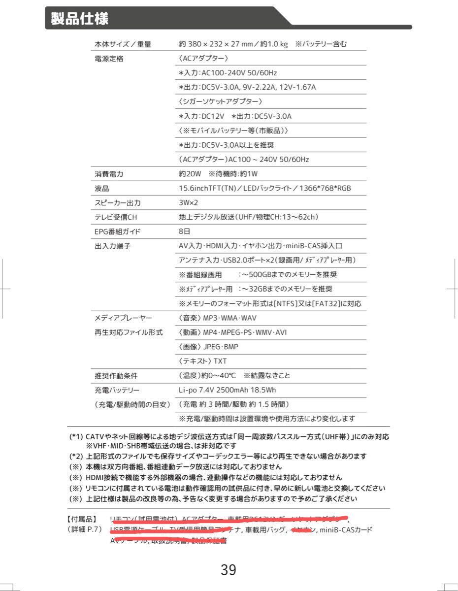 説明書、アダプター、リモコンなどの付属品はなく、miniBcasカード付き液晶モニターのみ出品です。