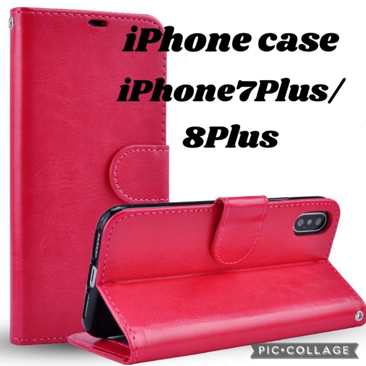 送料無料 スマホケース 手帳型 iPhone 7 Plus/8 Plus レザー 手帳 本革調 高品質 カード収納 ローズピンク