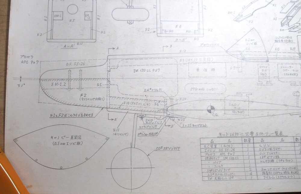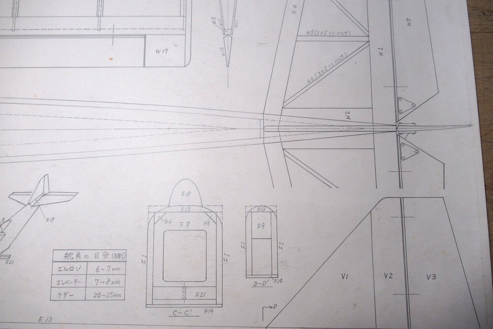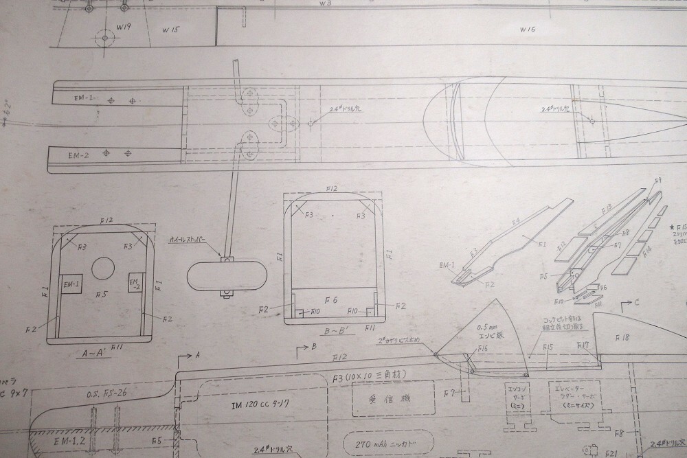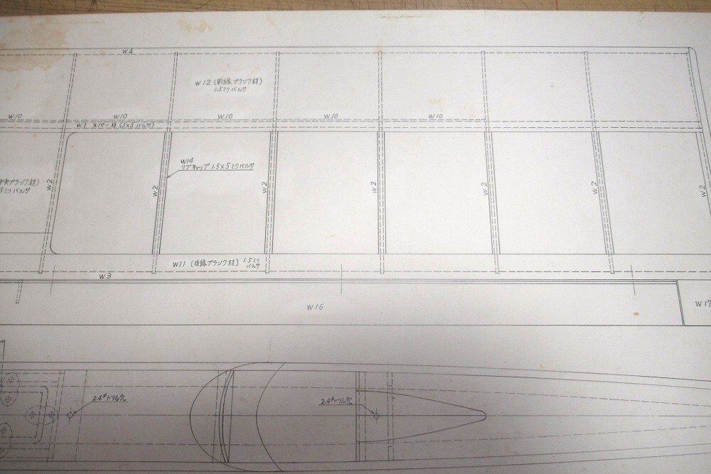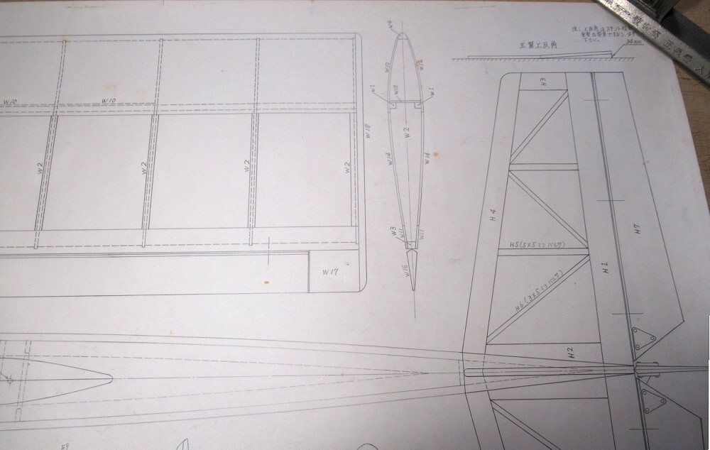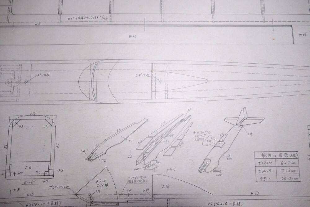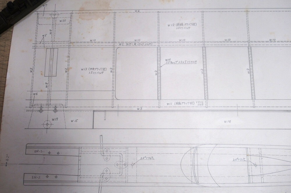 ・バルサキットに入っていた青焼きコピーではなく、設計者本人がドラフターで描いた図面です。