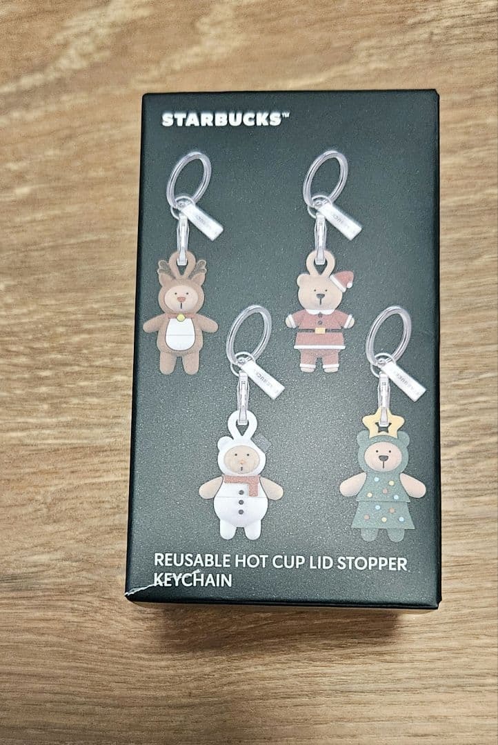 クリスマス限定のベアリスタ、スノーマンデザインの再利用可能なカップ蓋ストッパーキーチェーン。