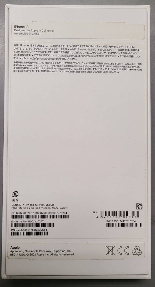 • ■機種 : iPhone13 256GB Pink ピンク A2631 MLNK3J/A