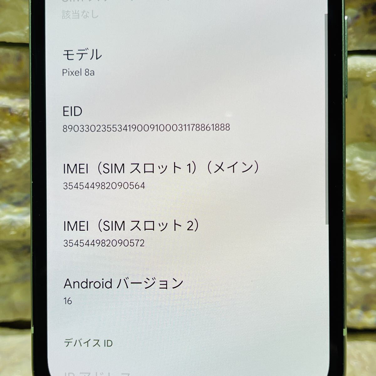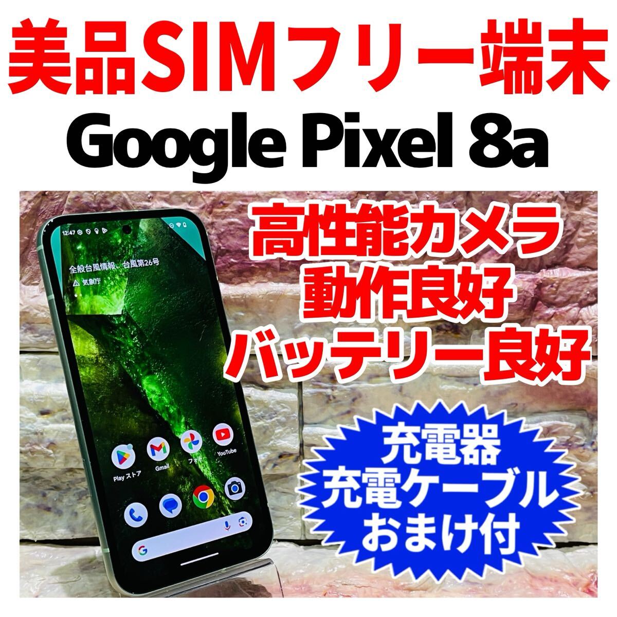 美品 グーグル ピクセル 8a 本体 128gb simフリー(simロック解除済) アロエ 電池良好 【a-1190】