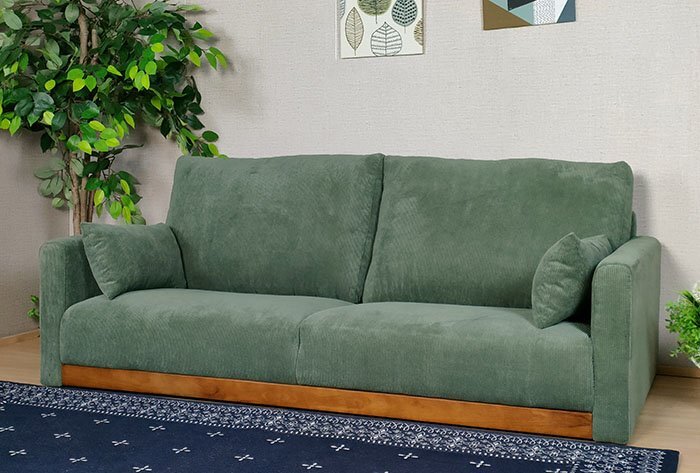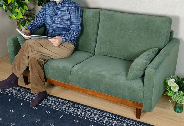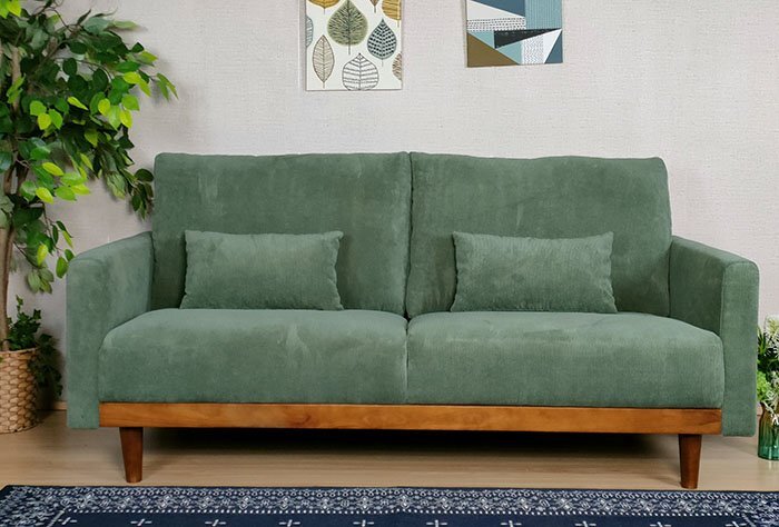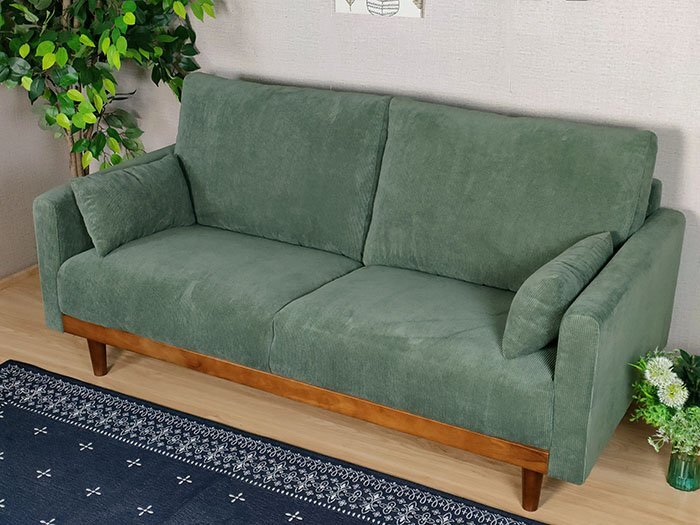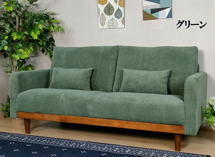 【3年間保証・送料無料】コーデュロイ 3人掛けソファ ファブリック (グリーン)