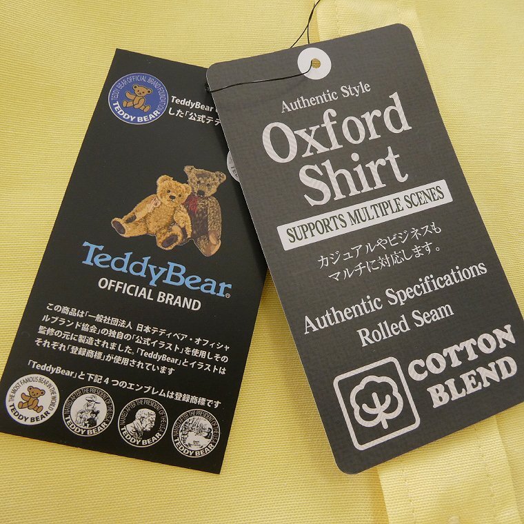 ・Teddy Bearの「登録商標」を使用した公式テディベア商品です。 ・公式イラストを使用し、日本テディベア・オフィシャルブランド協会監修の元にデザインされたTeddy Bearロゴが胸部分に刺繍されております。 ・生地はややソフトで通気性の良いオックスフォード生地を採用し快適な着心地です。 ・シンプルな無地柄のボタンダウンシャツ。洗練されたイメージを醸し、パンツイン・アウトどちらでも様になる1枚です。 ・開襟しても襟立ちが良いボタンダウンカラー、センターボックスプリーツ、左胸ポケットありの仕様になります。 |