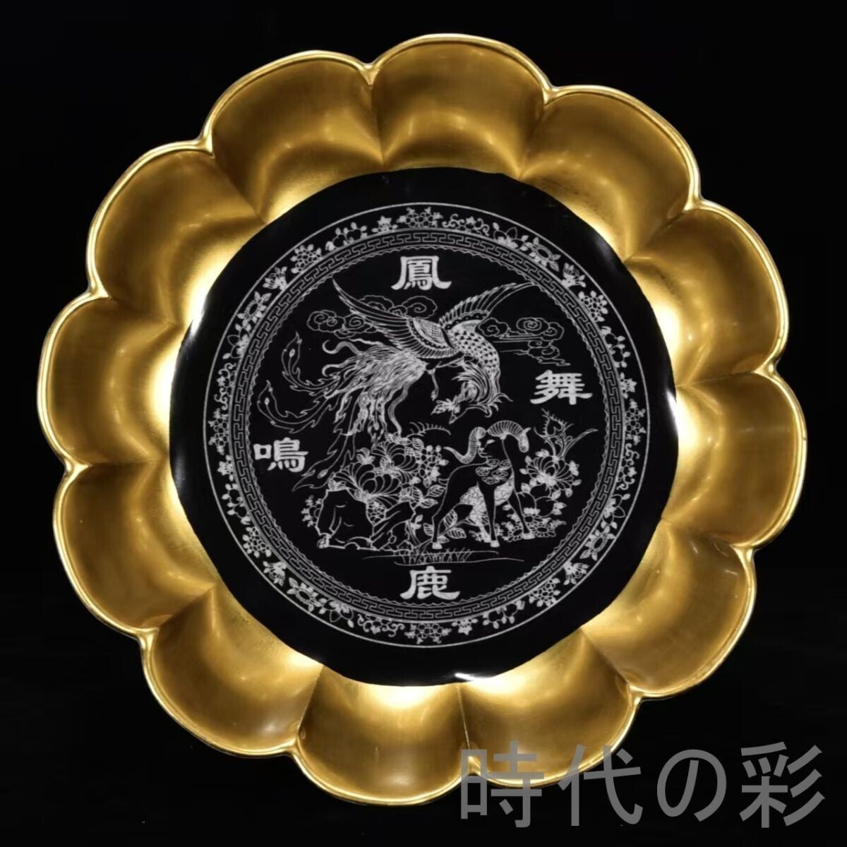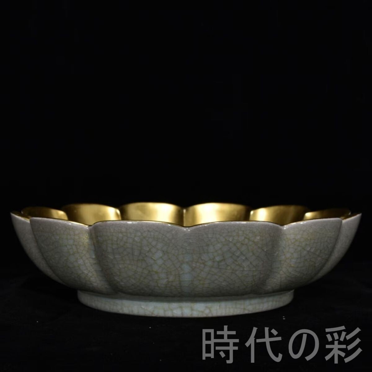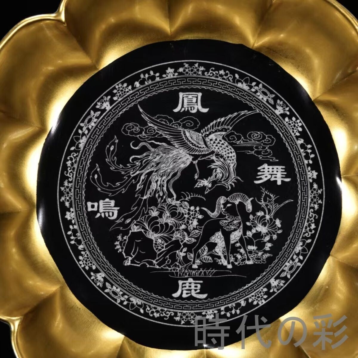【美の継承】中国古美術 宋代 汝窯 鍍金 漆器 刻鳳舞鹿鳴紋 洗 古陶磁 旧家蔵出 時代物 唐物 青磁 陶磁器 古美味 R07101924