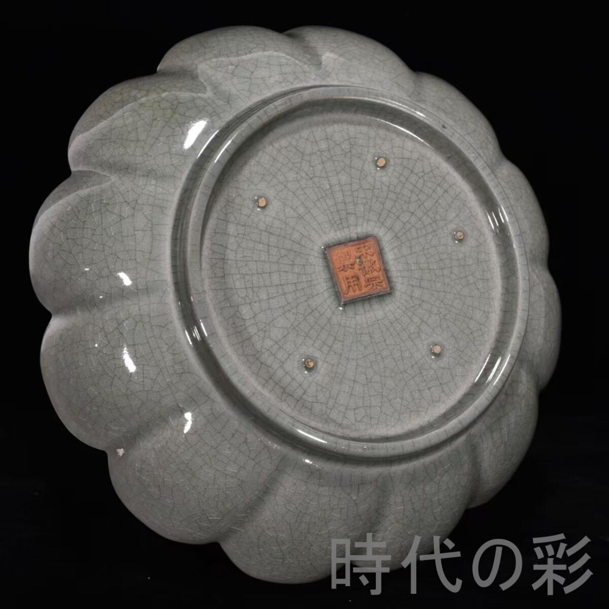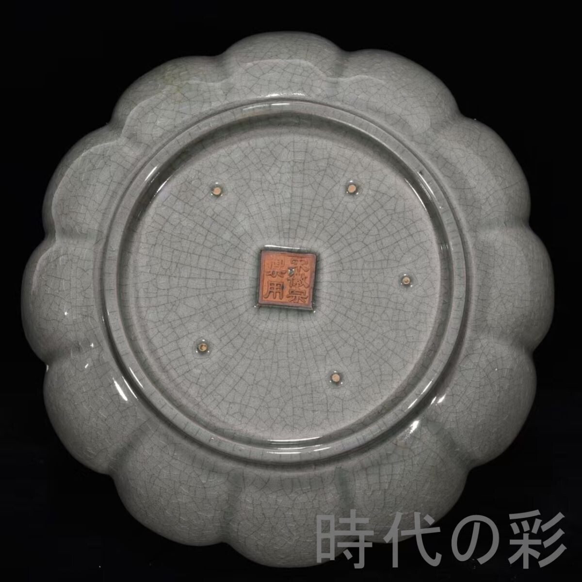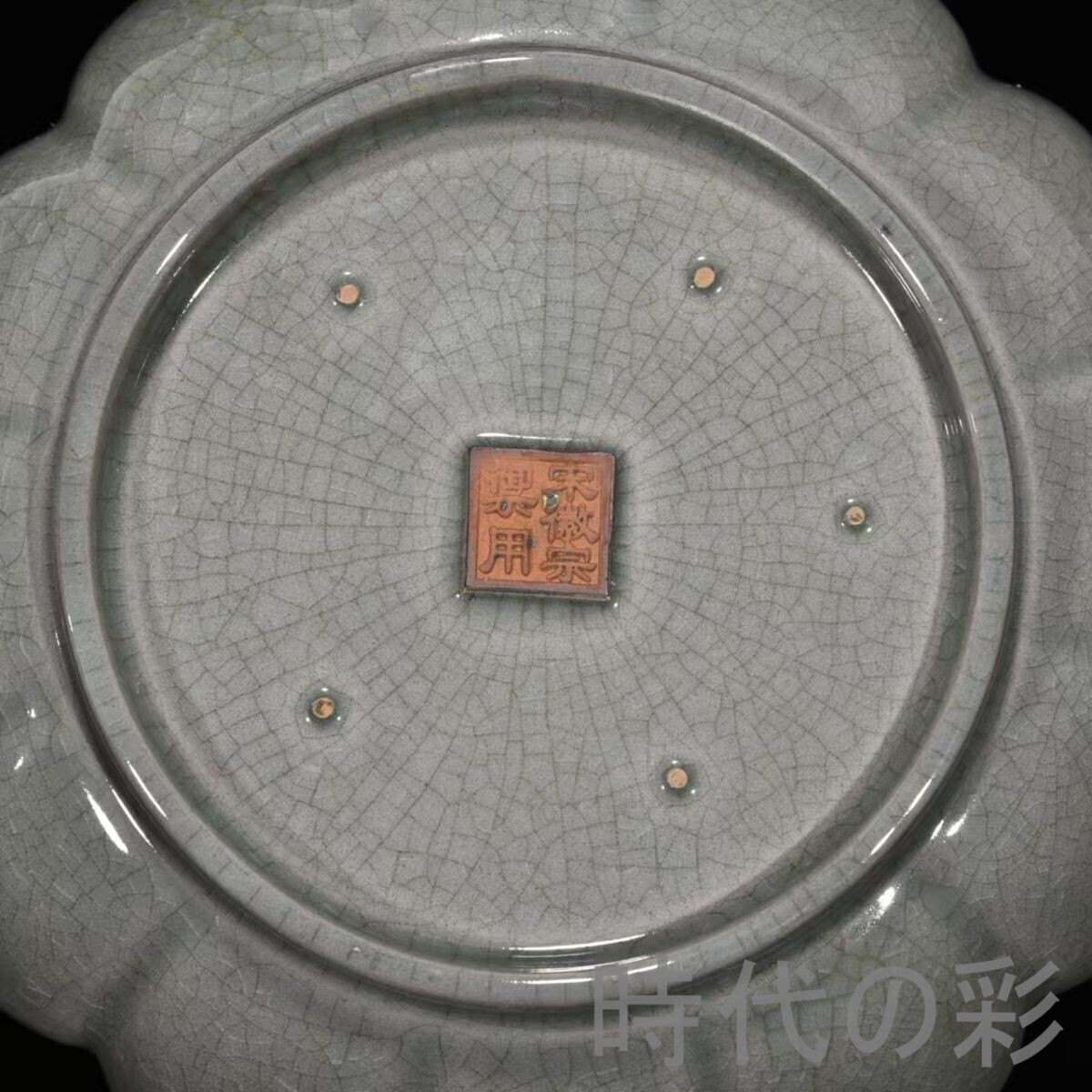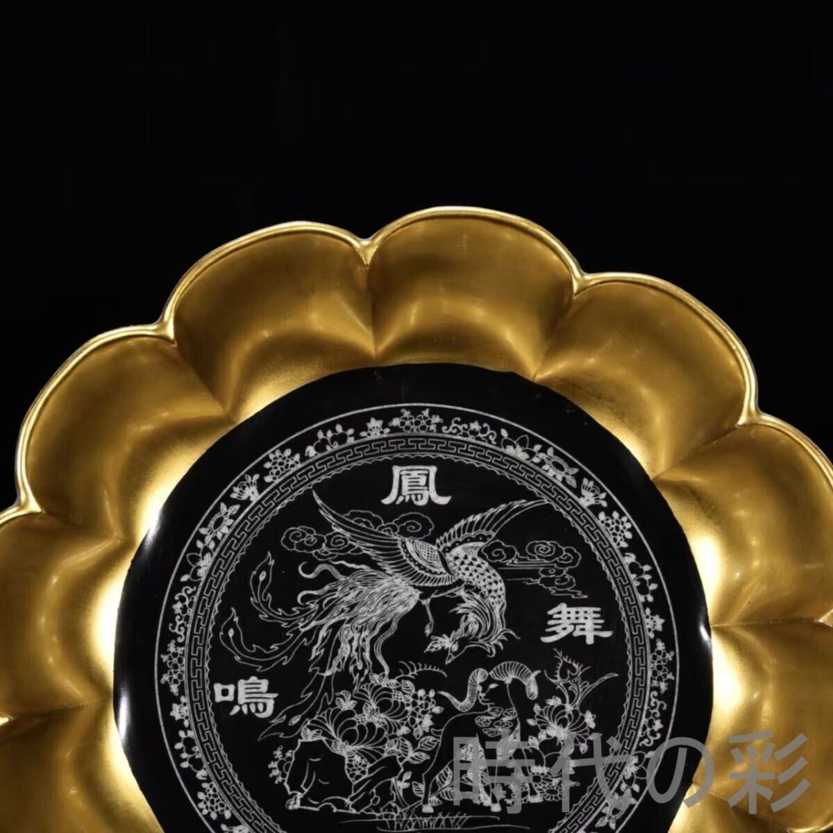 【美の継承】中国古美術 宋代 汝窯 鍍金 漆器 刻鳳舞鹿鳴紋 洗 古陶磁 旧家蔵出 時代物 唐物 青磁 陶磁器 古美味 R07101924