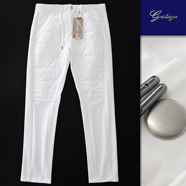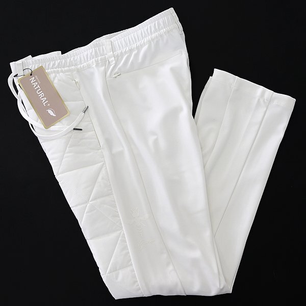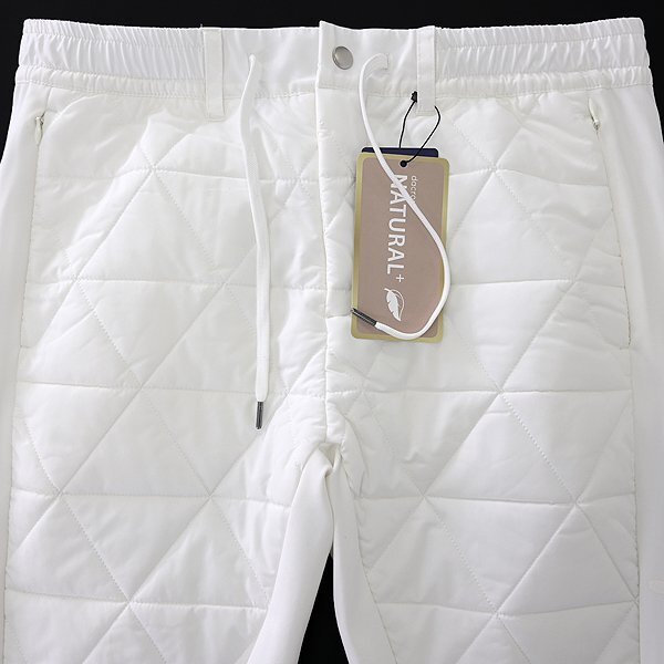 | 新品 未使用 紙タグあり 50サイズ(XLサイズ相当) ※商品に記載されたサイズ・寸法です※ ウエスト実寸87~95cm(内回り1周・ゴム入り) 股上27.5cm 股下75cm 裾幅17.5cm 腿幅28.5cm(股下10cm部分) ※伸縮性がある素材のため多少誤差が生じることがあります※ 表地(表側):ナイロン72% ポリウレタン28% 表地(裏側):ポリエステル100% 別布:ポリエステル100% 中綿:ポリエステル100% 裏地:ポリエステル100% ホワイト |