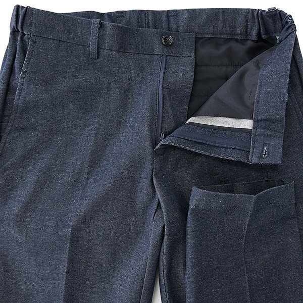 特殊な染色した糸を用いた色が落ちにくい【ever denim fabric】を採用したセットアップです。 程よく伸びるストレッチ素材なので、動きやすく、着用時の負担を軽減してくれます。 色落ちがしにくいため、購入時の色合いを長くお楽しみいただけて、更にマシンウォッシャブル対応なので、洗濯の際に他の物と一緒に洗うことができます。 ジャケットは、素材のストレッチ性を損なわない快適なアンコン仕立てで、パターンの改良により袖の可動域がアップし、より腕が動かしやすくなっており、フロントの着丈を少し長くすることで、着映えするキレイめシルエットにバージョンアップ。 飾りステッチを同色にすることでカジュアル見えを抑え、ビジネススタイルでも着用できるようにデザインされています。 スラックスは、すっきりとしたテーパードシルエットを採用し、ウエスト横のゴムシャーリングにより快適な穿き心地に仕上がっています。 デニム見えなデザインなのでビジネススタイル以外にも合わせやすく、カジュアルな着こなしにも対応できて、オンにもオフにも活躍してくれます。 セットアップとしてだけでなく、上下を別々のコーディネートに投入することで、幅広いスタイリングを可能としてくれる優秀アイテムです。 しっかりとした素材感なので、秋冬はもちろん春頃までロングシーズンで着用いただけます。 【ジャケット】 ・アンコン仕立て(裏地は背抜き仕様) ・フロントは2つボタン ・センターベント ・袖先は3つボタン(開き見せ) 【スラックス】 ・ノータック ・ジッパーフライ ・テーパードシルエット ・ウエスト横にゴムシャーリング入り |