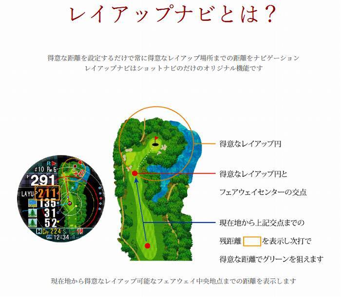 機能面でも「レイアップナビ」や 「グリーンディレクション」といった 新機能を搭載し、 格段に使いやすくなった「Evolve PRO」で あなたのスコアアップに是非お役立てください。