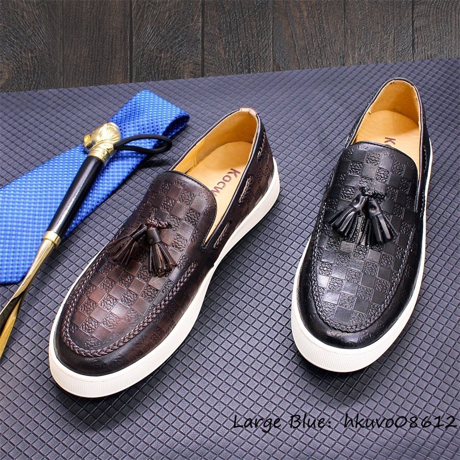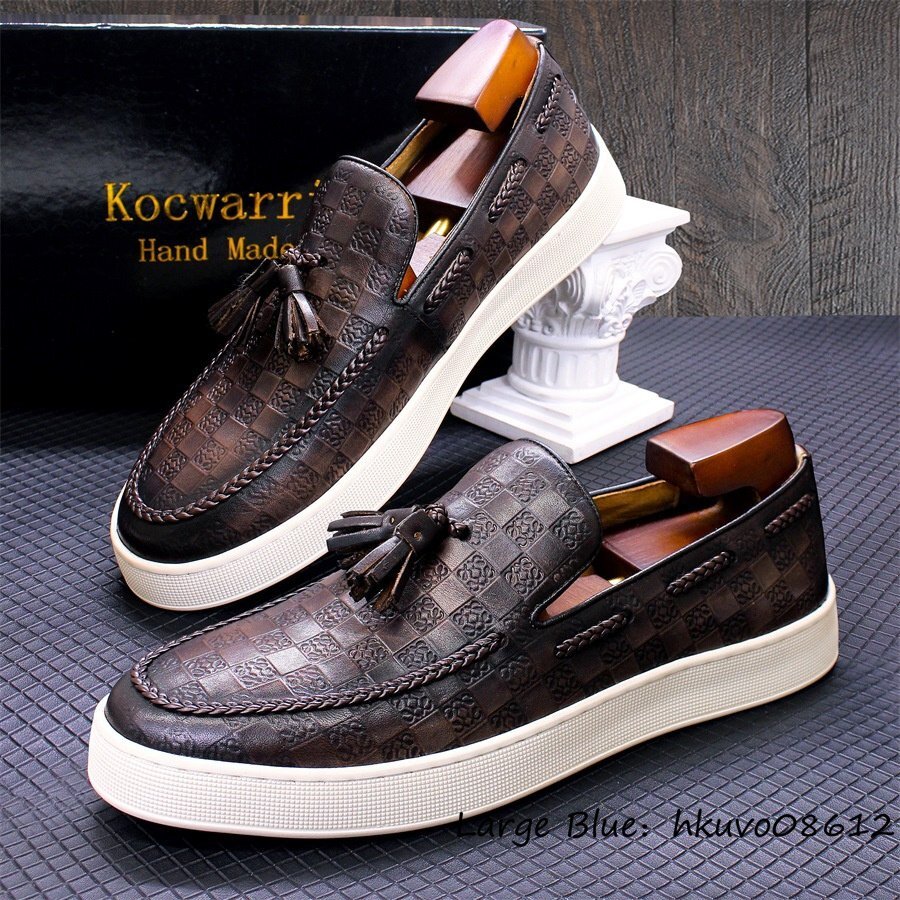 極美品★ローファー スリッポン 本牛革 職人手作り ビジネスシューズ レザーシューズ クラシック 本革 タッセル 紳士靴 ブラウン 27.0cm