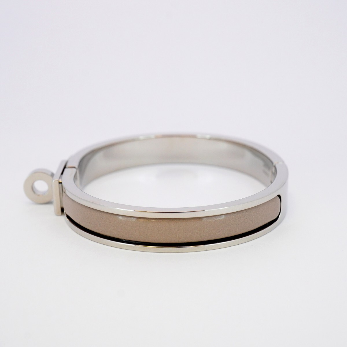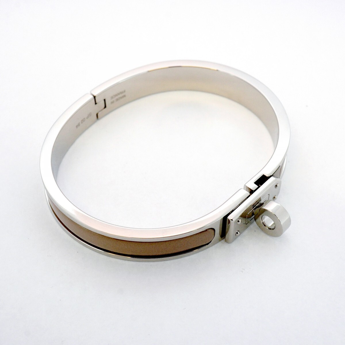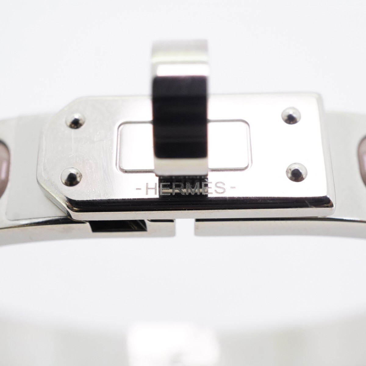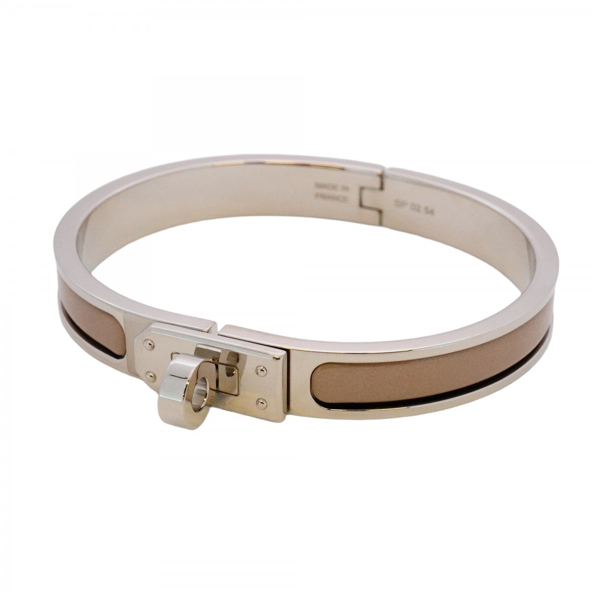 【5jmb0972】エルメス バングル ミニクリック/ケリー メタル シルバー ベージュ【中古】レディース