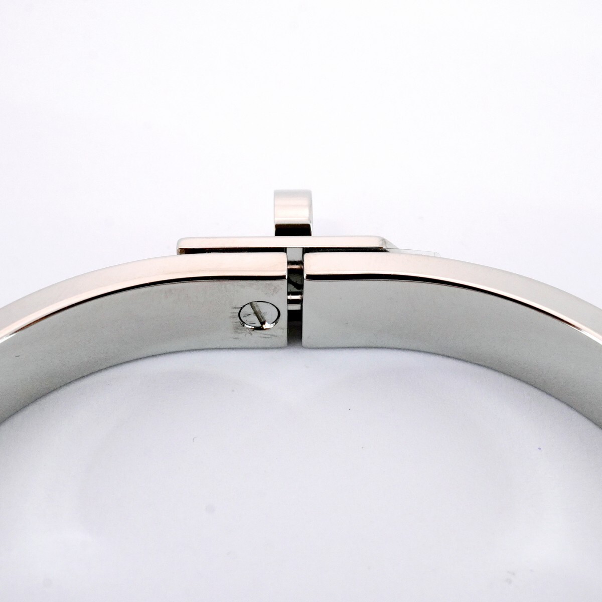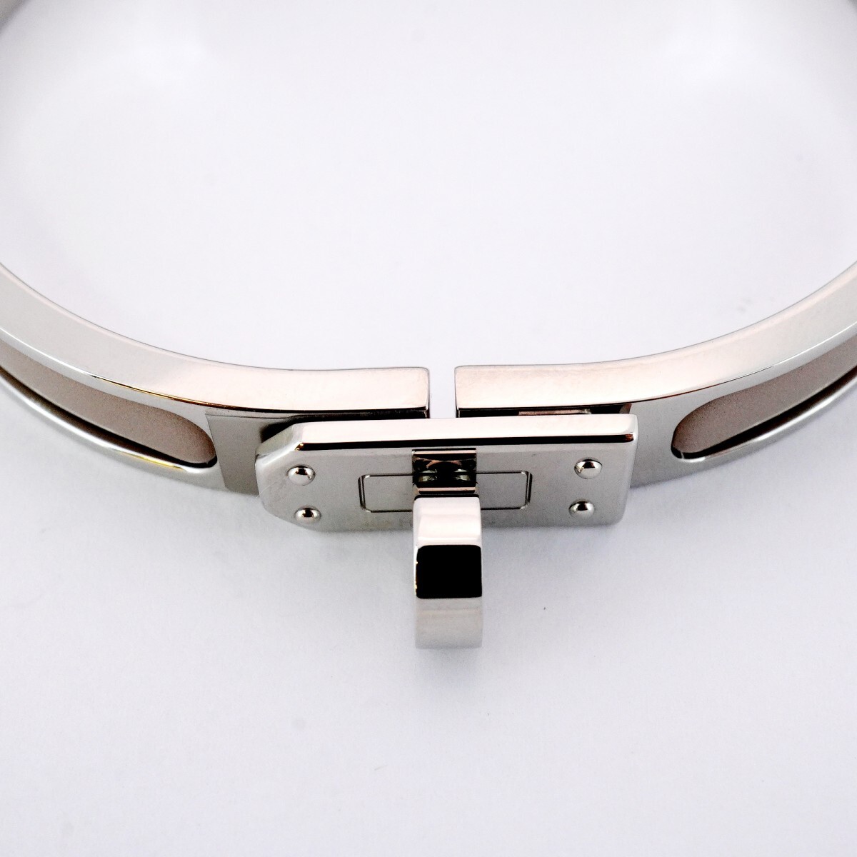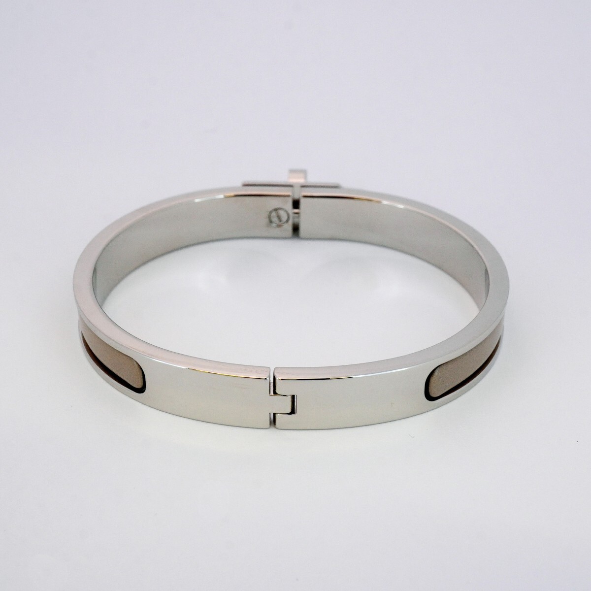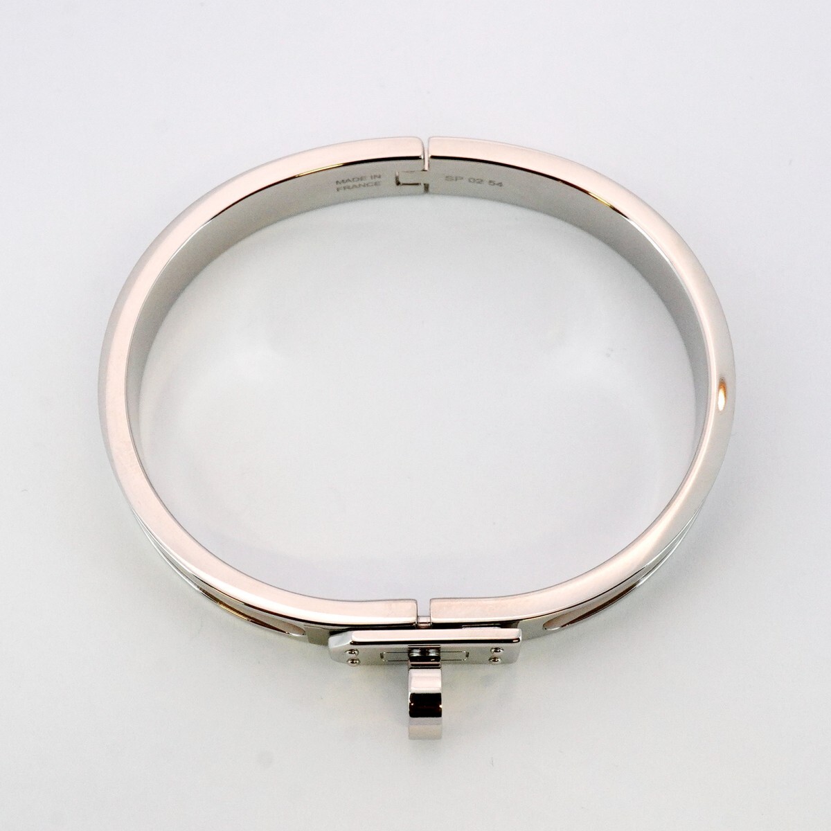 【5jmb0972】エルメス バングル ミニクリック/ケリー メタル シルバー ベージュ【中古】レディース