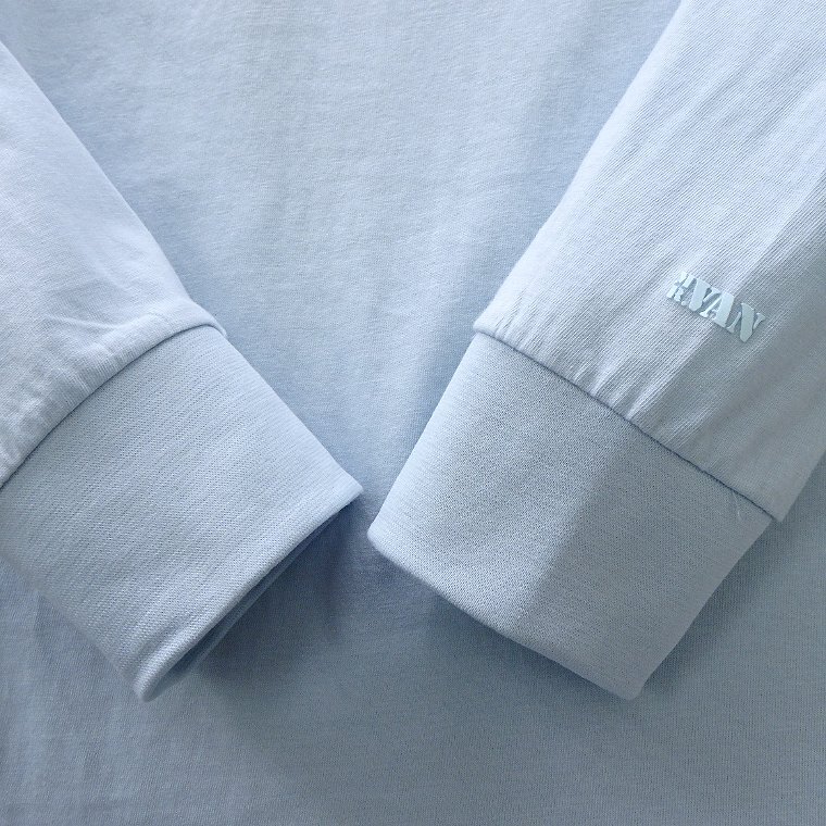 Lサイズ(画像は別サイズを使用) 胸囲96~104 ※商品に記載されたサイズ・寸法です※ 肩幅47cm 身幅55cm 袖丈61cm 着丈69cm 本体:綿100% 袖口リブ部分:綿95% ポリウレタン5% 77(SAX) |