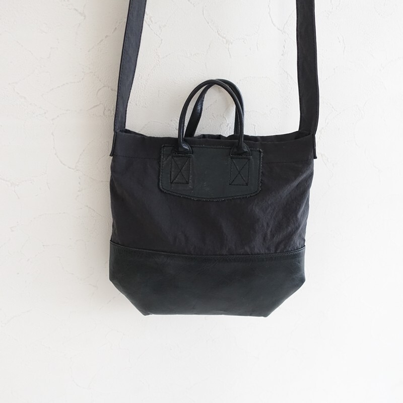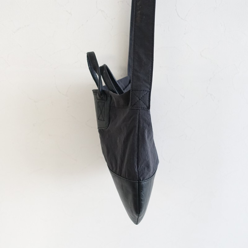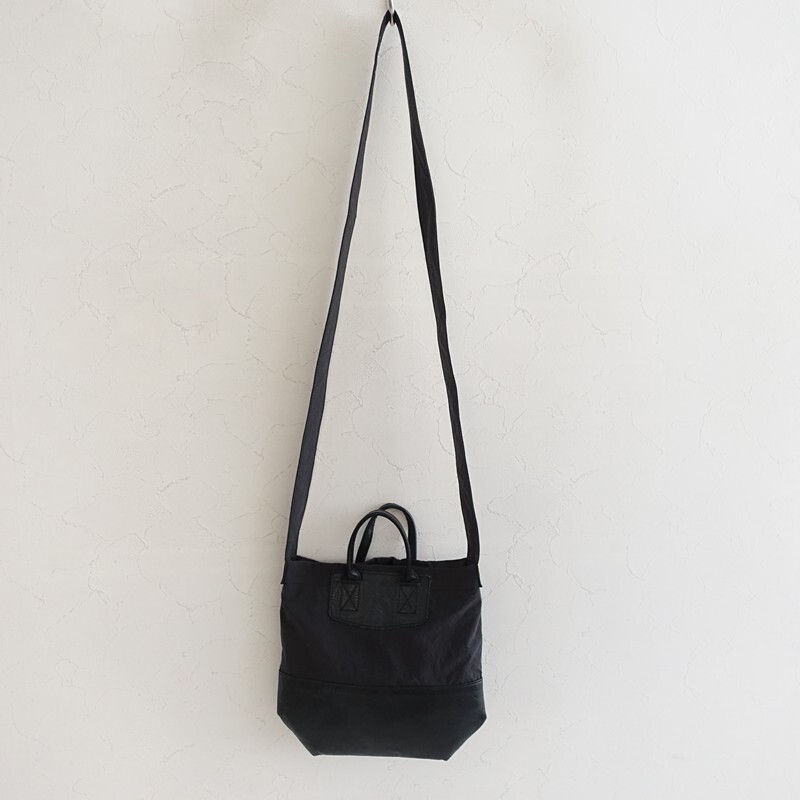| ARTS&SCIENCEのナイロンレザーショルダーバッグです。カラーはチャコールグレーで、内側にオープンポケットが1つあり、手提げとショルダーの2way仕様です。 |
