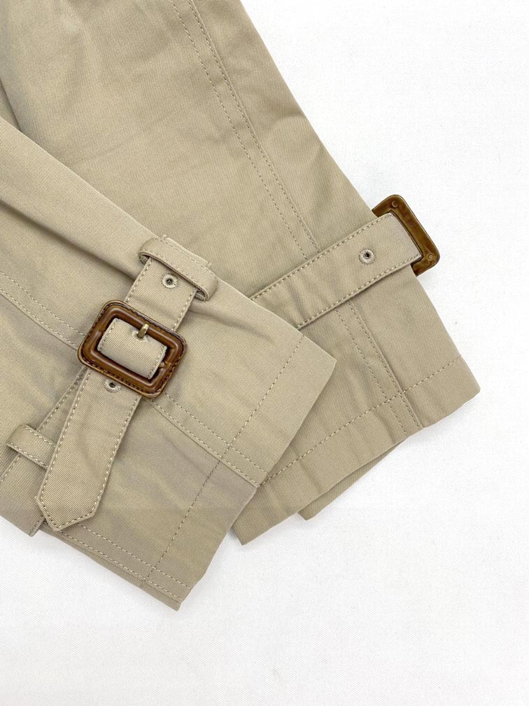 | 商品の状態 | ウエスト:ベルト付き 裾、襟、袖口汚れ 裏地に黄色いシミ ベントのボタン紛失 商品に目立つヨゴレなど無く、USEDとして良い状態です。 (当方管理番号:lrfk058128-t) | ||||||||||