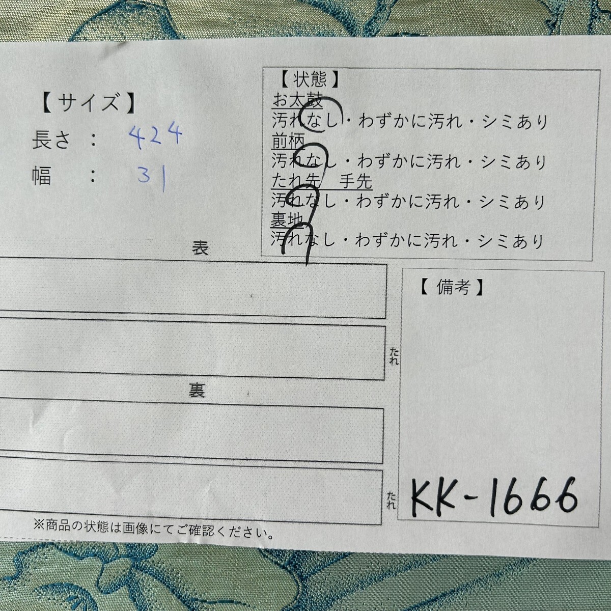 画像内に検品表を掲載しております。