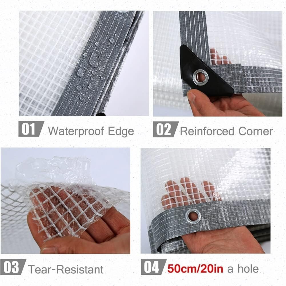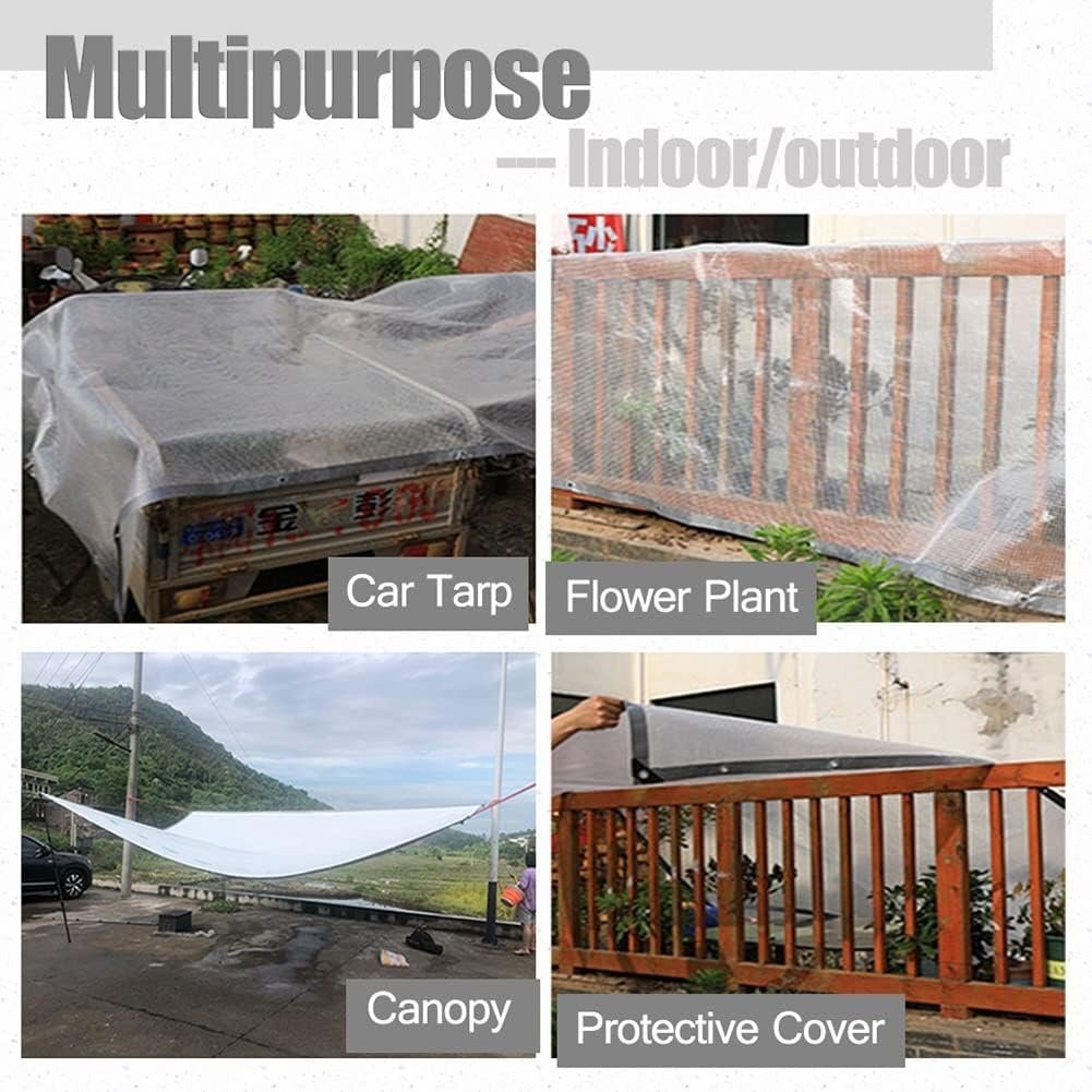 ●【使いやすい透明ターポリン! 】防水ターポリンは、温室、庭、芝生、パーゴラ、屋根、パティオ、中庭、ペット、プール、農場、キャンプ、車、ボートなどで使用できます。植物の断熱材、アウトドア キャンプ テント、家庭用ダスト カバー、防水バルコニー カーテン、車のカバーなどにも使用されます。屋外カバーや屋内での使用に最適で、湿気やほこりに強いです。