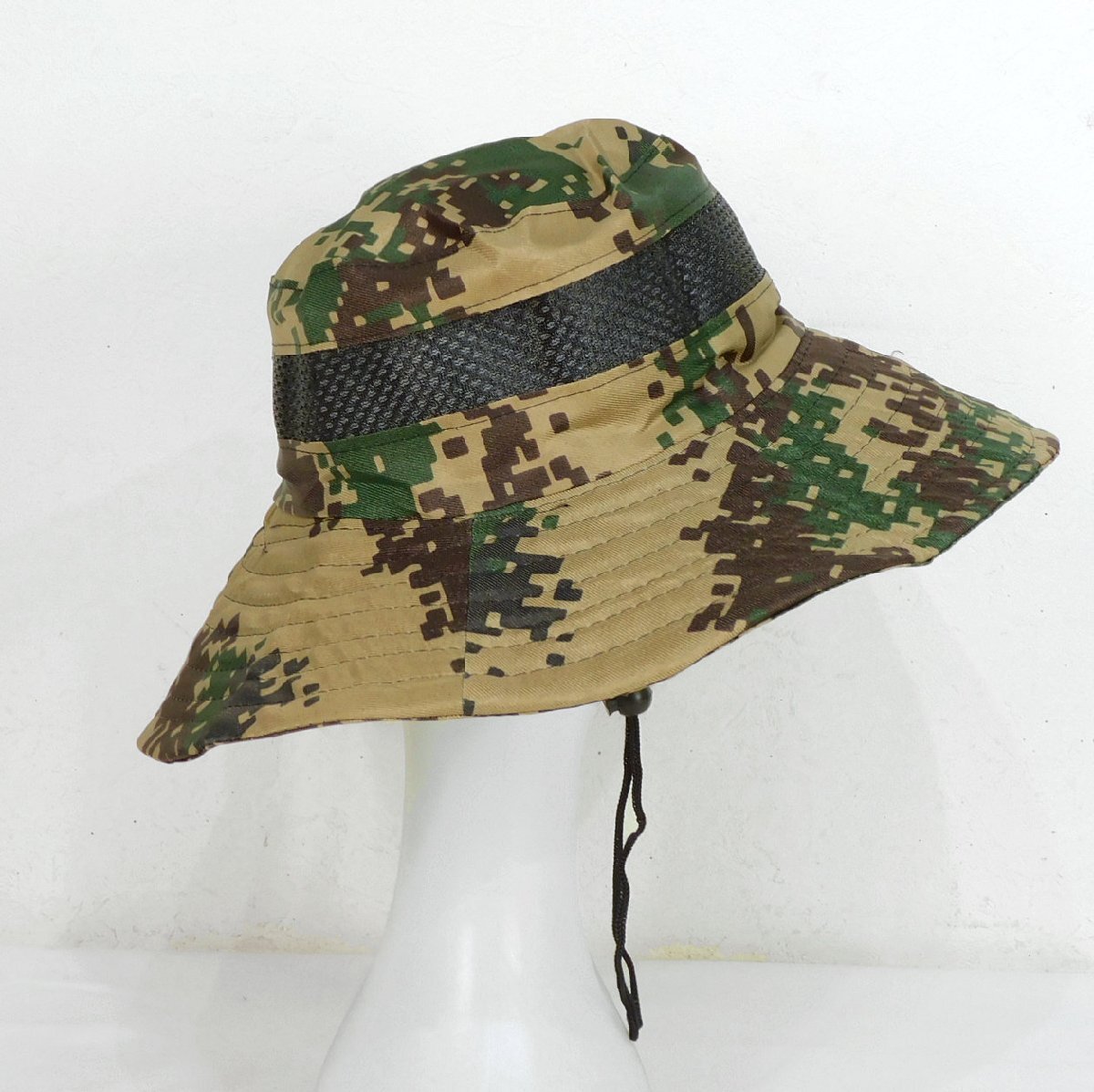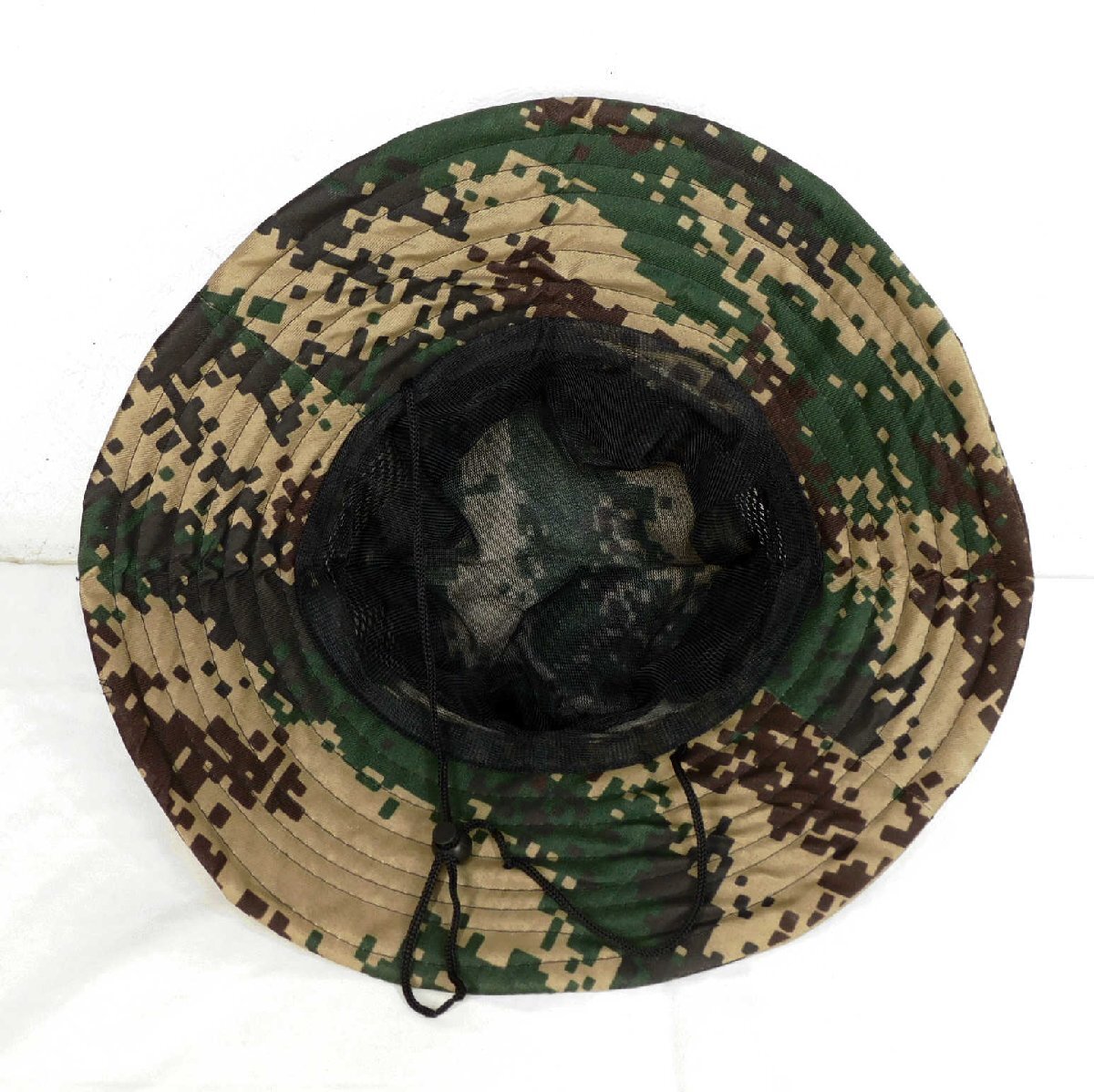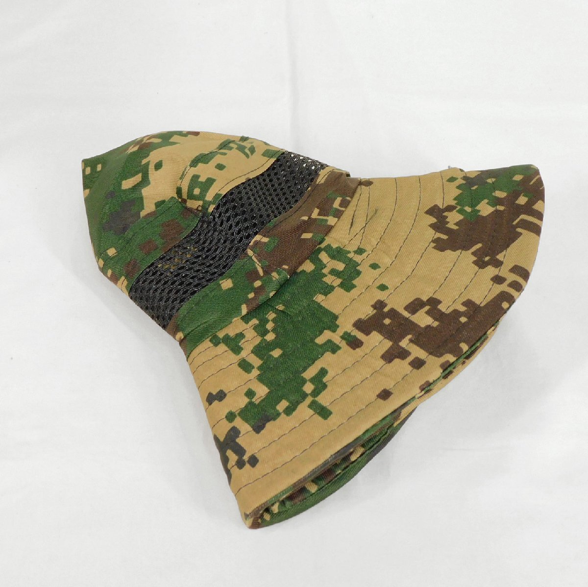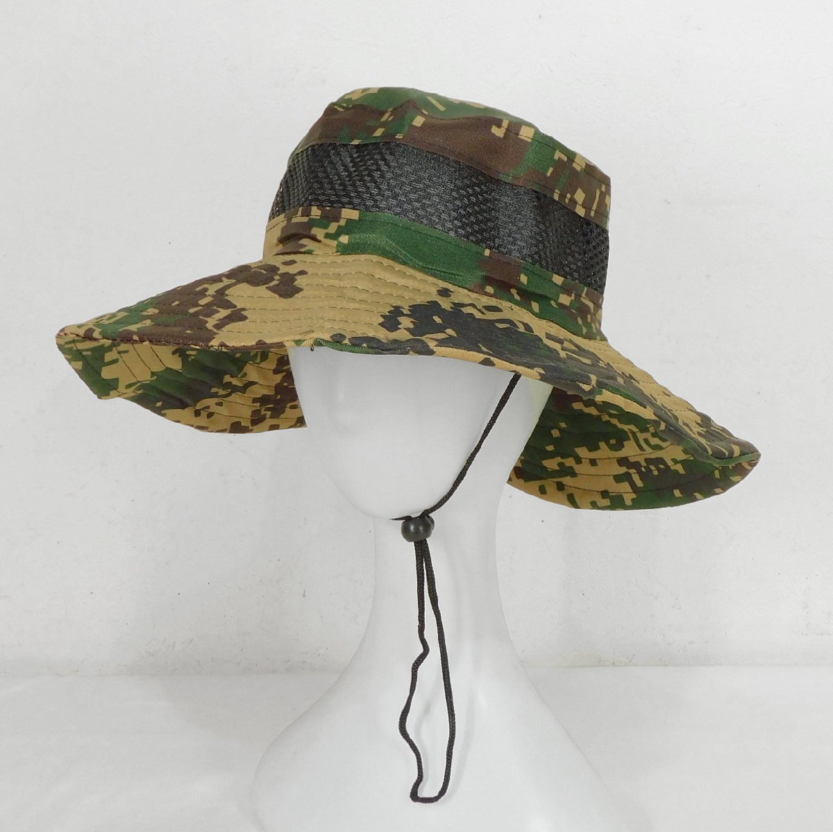◆迷彩メッシュハット◆57cm◆ツバ広◆あご紐◆折り畳み◆日焼け防止◆通気性◆夏場、アユ釣り◆帽子◆
