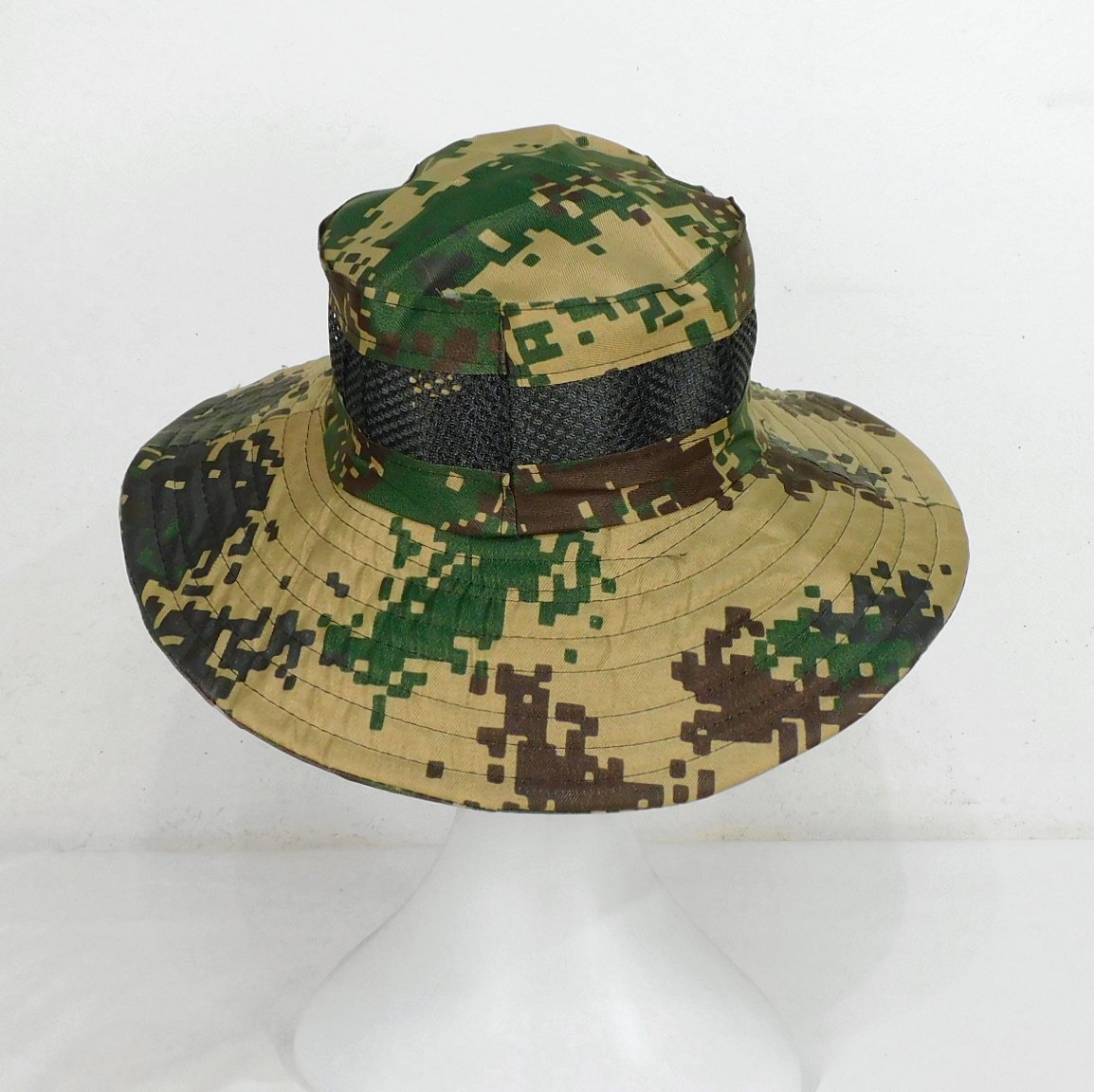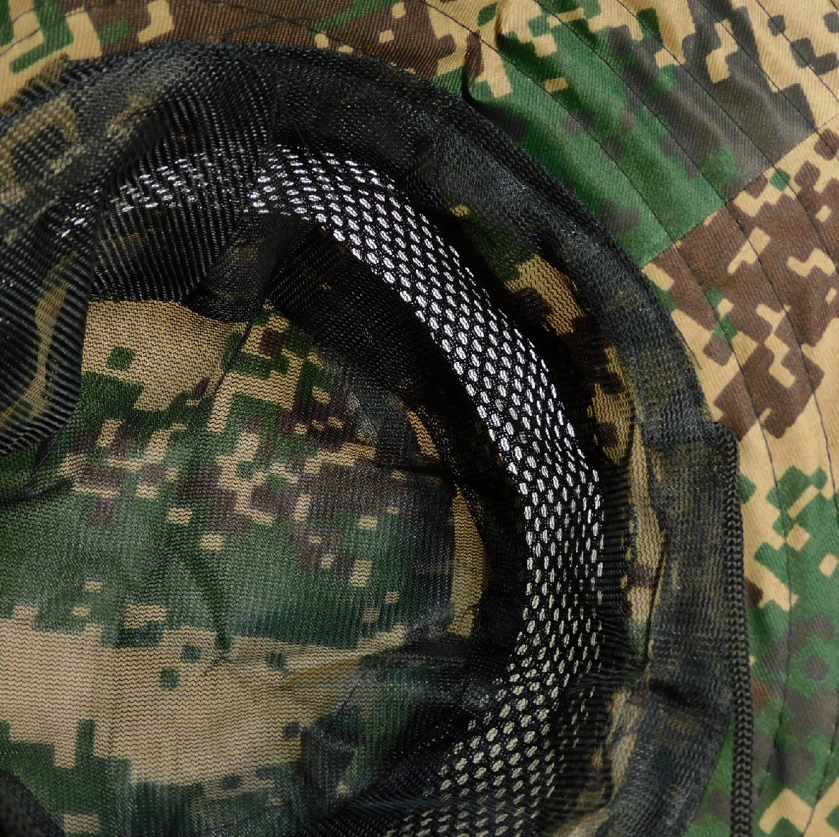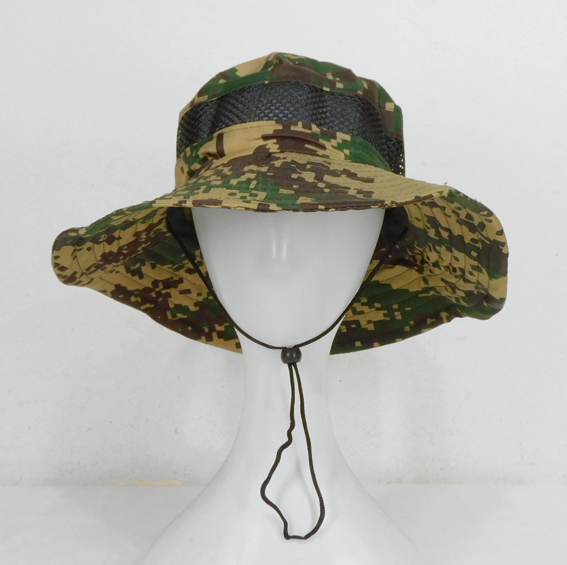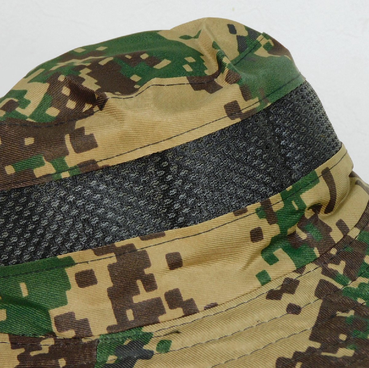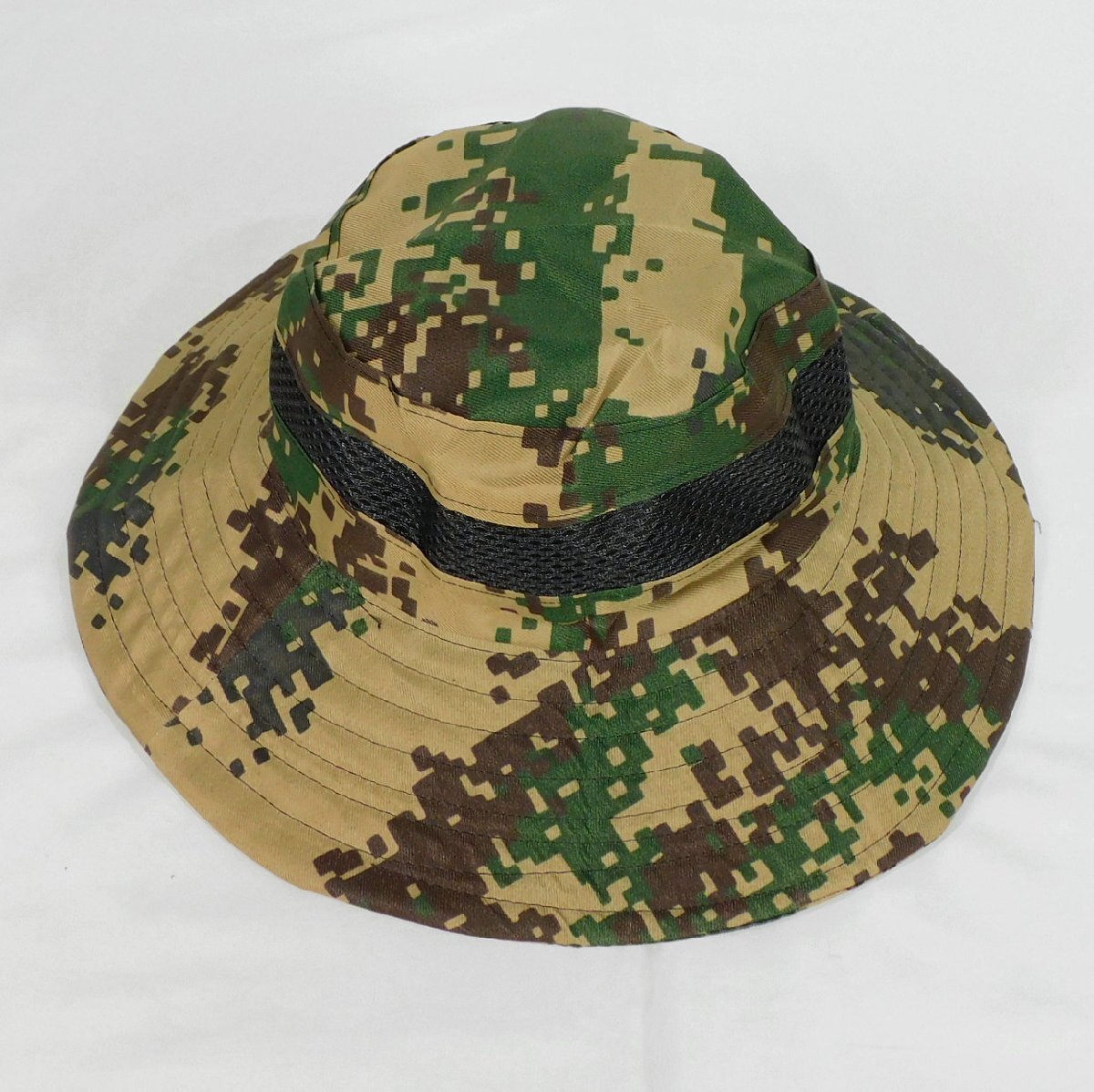 ◆迷彩メッシュハット◆57cm◆ツバ広◆あご紐◆折り畳み◆日焼け防止◆通気性◆夏場、アユ釣り◆帽子◆