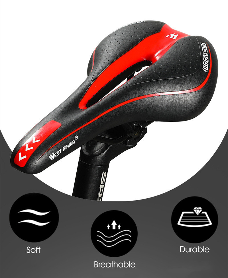 自転車用サドル 圧迫軽減 通気性抜群 衝撃吸収 GEL入り 撥水素材 PUレザー張 軽量 ロード MTBなどに GWCSZD5003RD