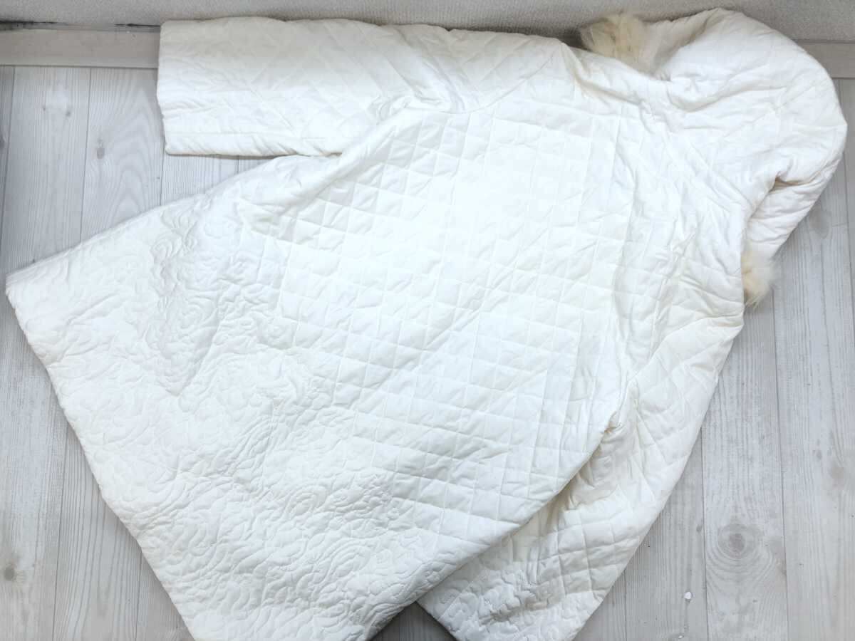 DELBA デルバ イタリア製 イタリーモード レトロ 古着 シルク混 フェイクファー キルティング パーカー コート アウター レディース 42 白 です。