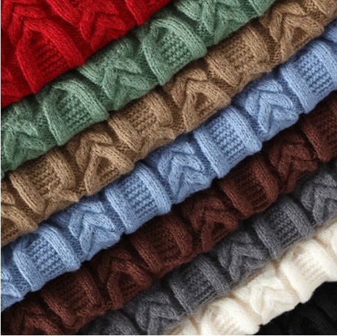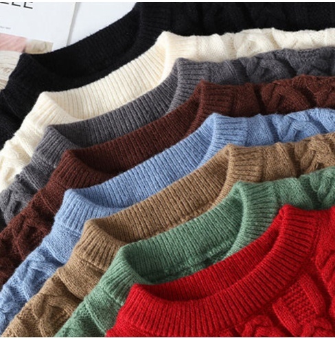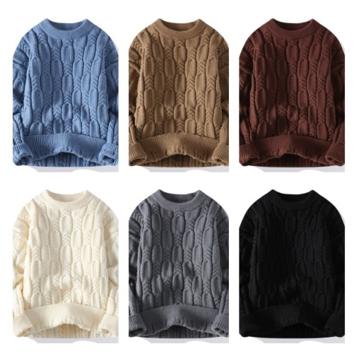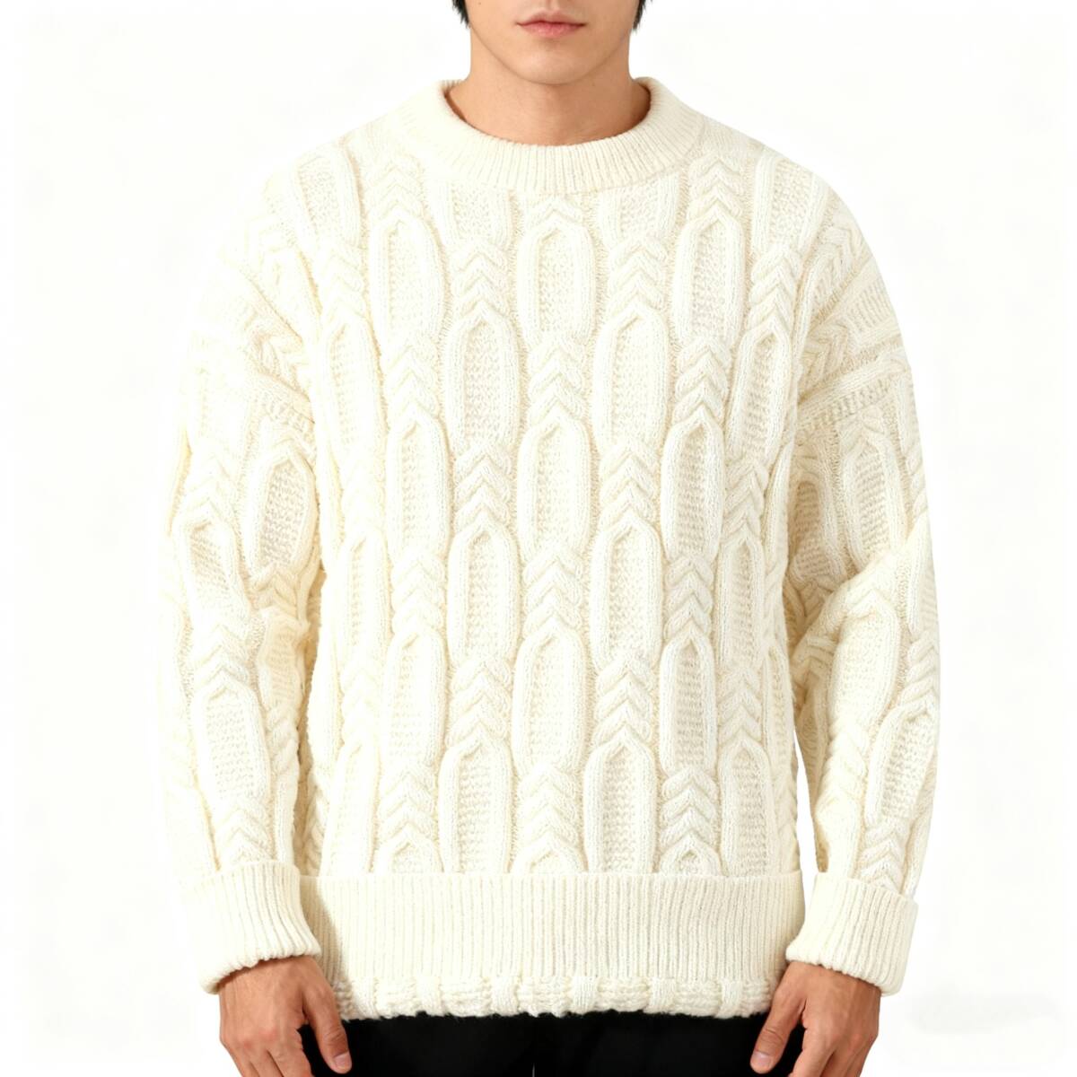 YF001-2XL ホワイト 新品 ウール混 セーター ニット ケーブル編み プルオーバー ラウンドネック 冬 厚手 暖かい 長袖 メンズ トップス
