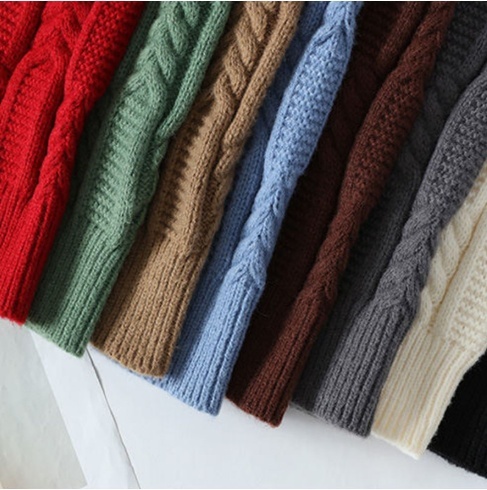 伝統的なケーブル編みが特徴で、上品さと温もりを兼ね備えた大人の雰囲気を演出します。シンプルながら存在感のある一枚です。