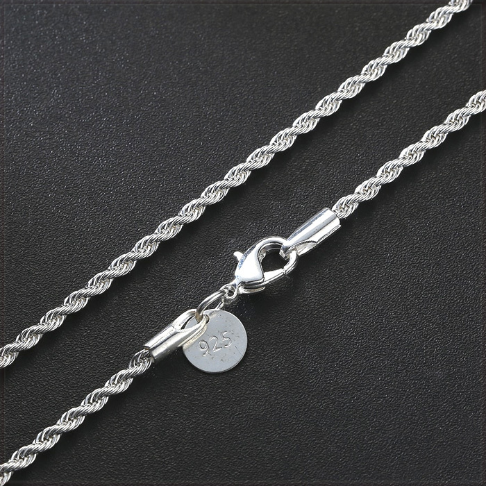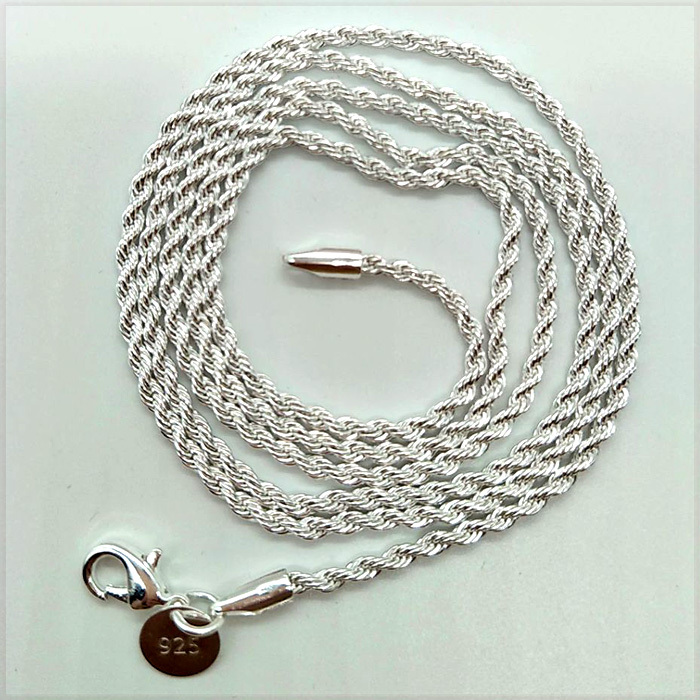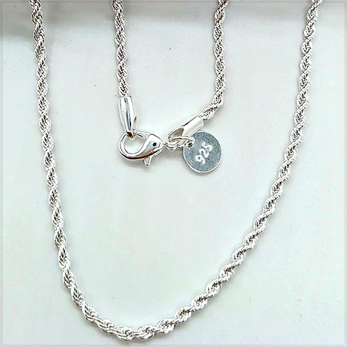 [NECKLACE] 925 Silver Plated Shine Twisted Line ツイスト ロープ スリムチェーン シルバー ネックレス φ2.4x500mm (8g)