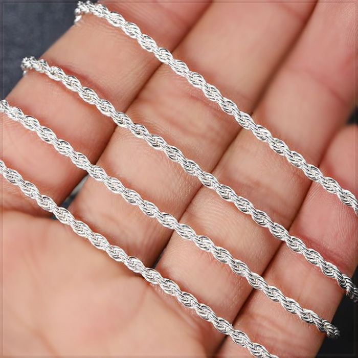 925 Silver Plated Shine Twisted Line ツイスト ロープ スリムチェーン シルバー ネックレス です。