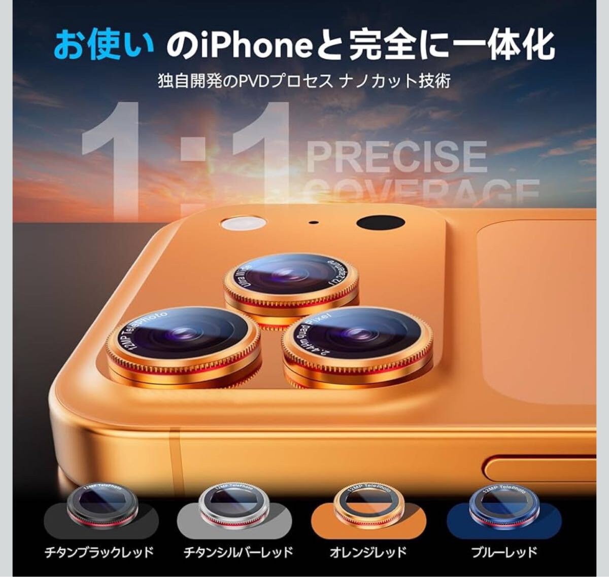 【完璧な装着感、1:1 精密設計】このiPhone 17 Pro/Pro Maxレンズプロテクターは、iPhone 17 Pro/Pro Maxのオリジナルレンズサイズに完璧にマッチするフルカバーデザインが特徴です。このレンズプロテクターは、慎重に作られた3Dテクスチャ、レーザーカットエッジ、正確に配置された穴が特徴です。