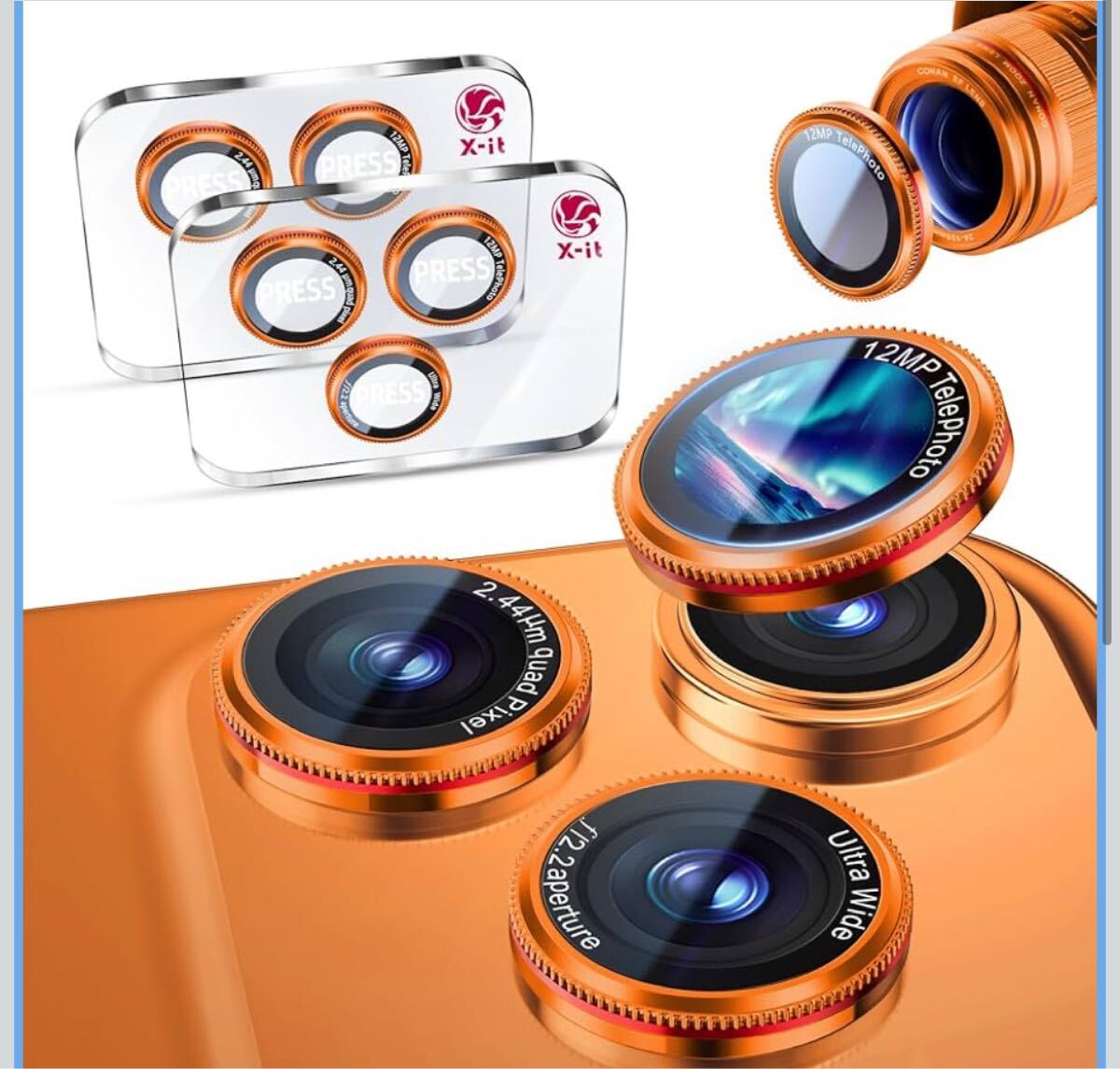 X-it iPhone 17 Pro/17 Pro Max用 カメラ保護 フィルム 2枚セット いphone17 Pro/17 Pro Max カメラ保護カバー アルミ合金 9H強化ガラス 露出オーバー防止 貼りやすい 耐衝撃 超高透過率 かっこいい-オレンジ色