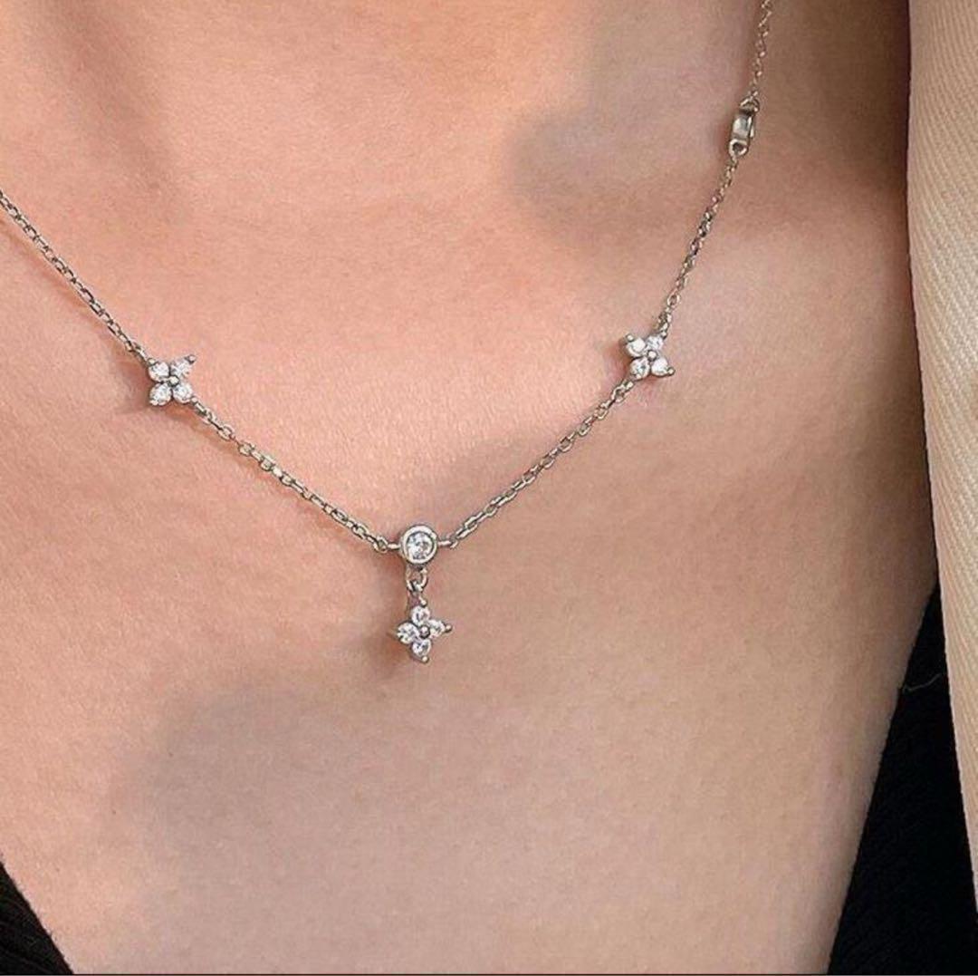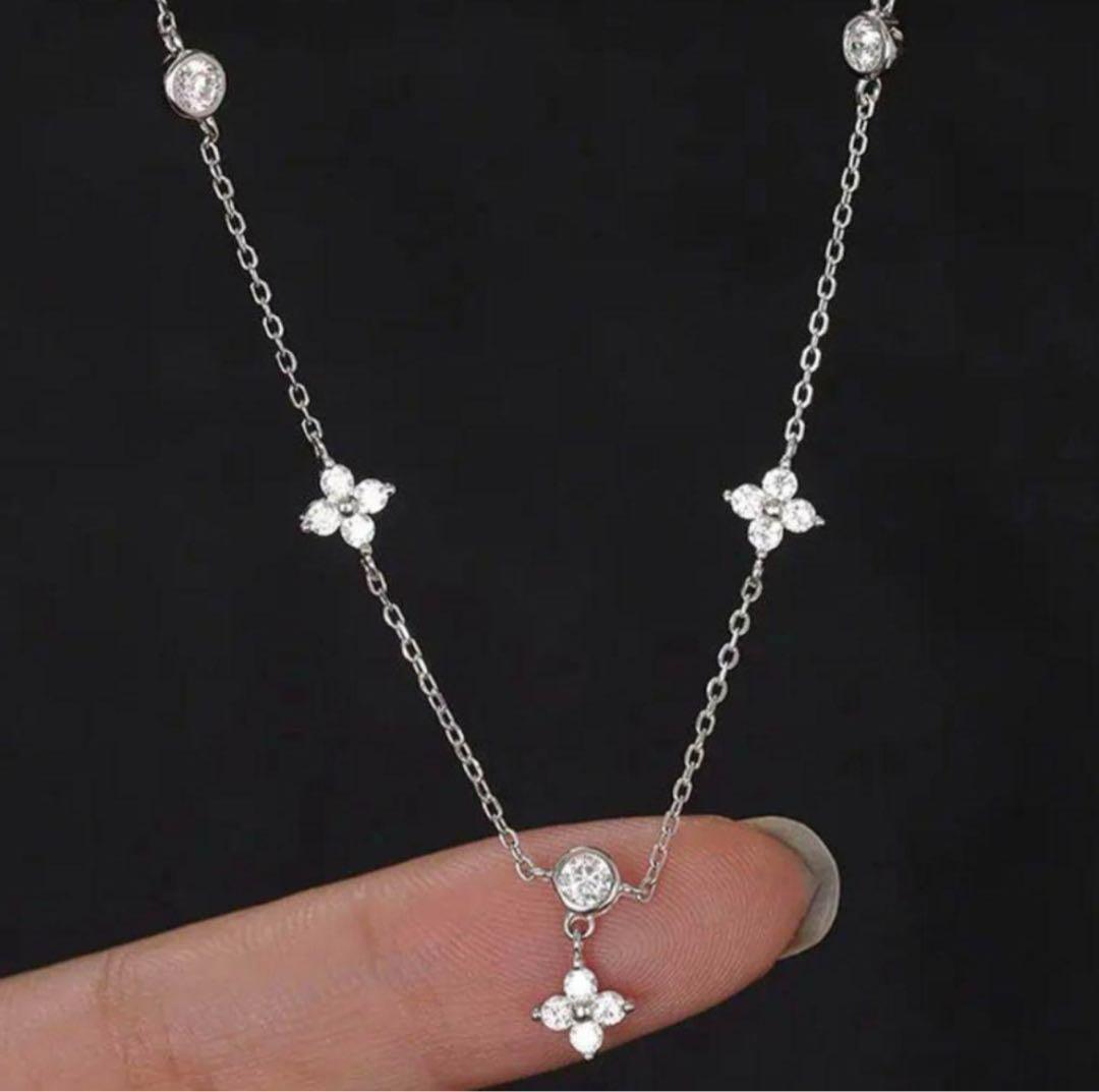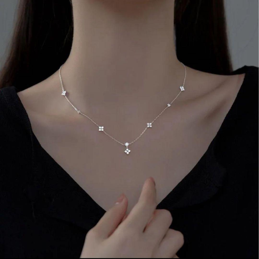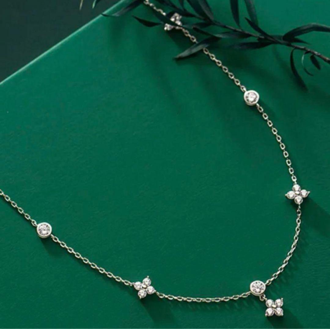 2mm〜3mmサイズのストーンが等間隔にセッティングされたステーションネックレス。