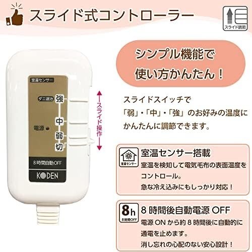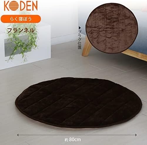 広電(KODEN)ホットマット らく寝ぼう 80×80cm 円形 ブラウン フランネル 洗える ダニ退治 8hOFF 室温センサー付 温度調節 CWR080G-B