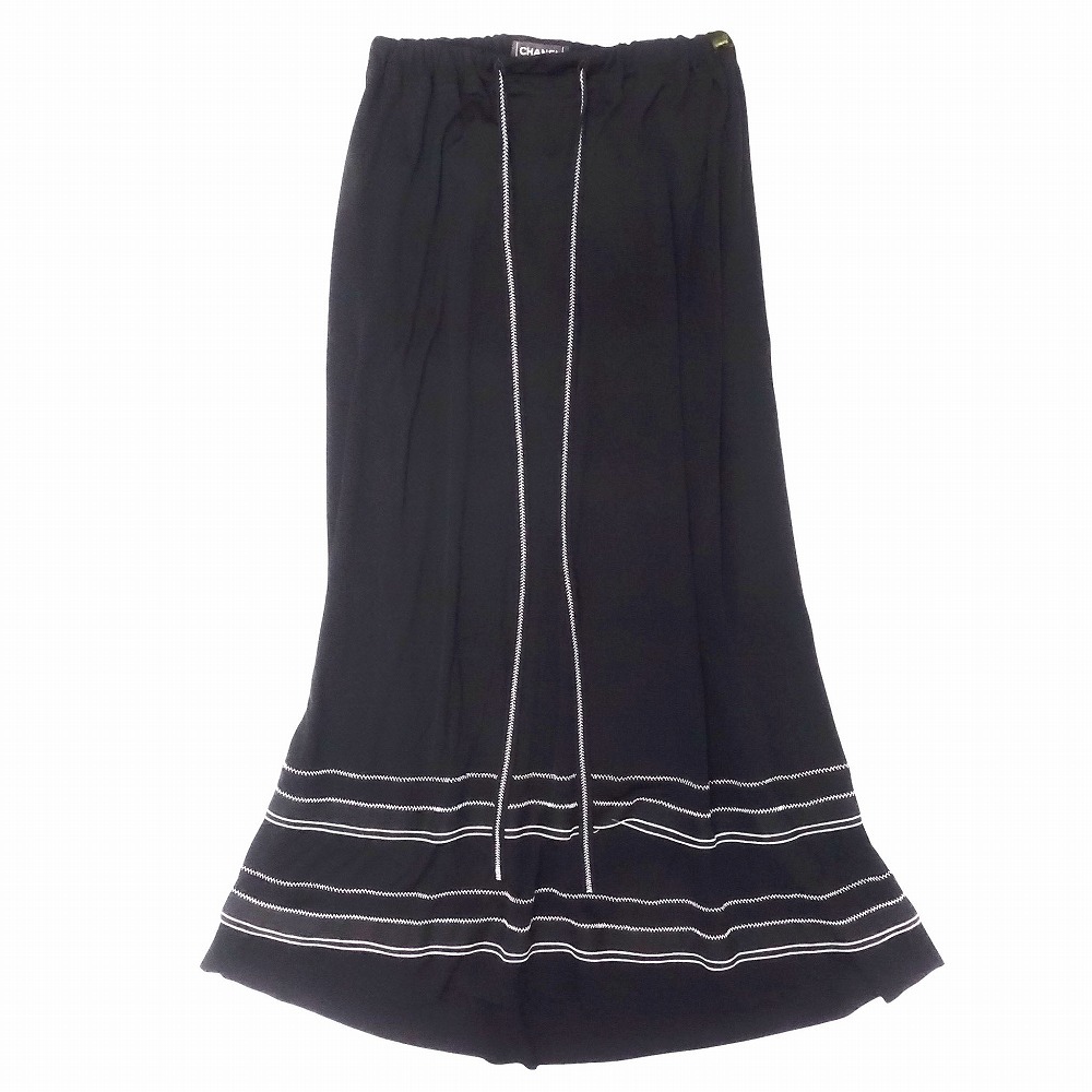 | 【00s CHANEL シャネル ロング スカート マキシ丈 ギャザー ステッチ ロゴ プレート付き 02P P19153 42 L ブラック レディース】 | |