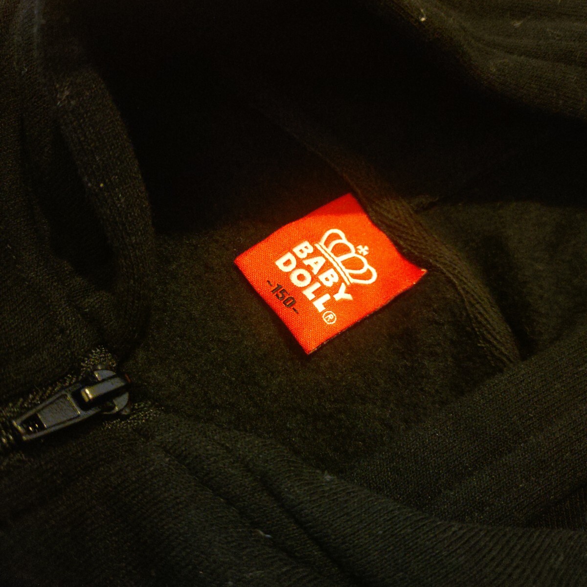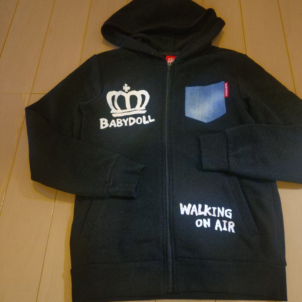 ベビードールの裏起毛パーカー150cmです。ブラック。3回位着用。比較的綺麗な状態だと思いますが、細かな点気になる方はご遠慮ください。