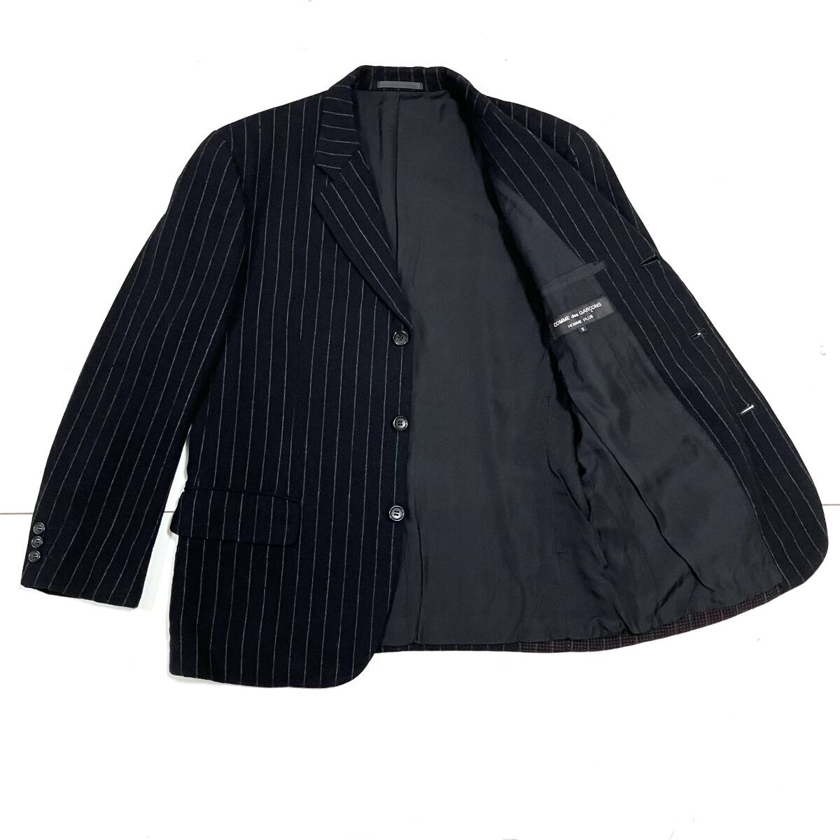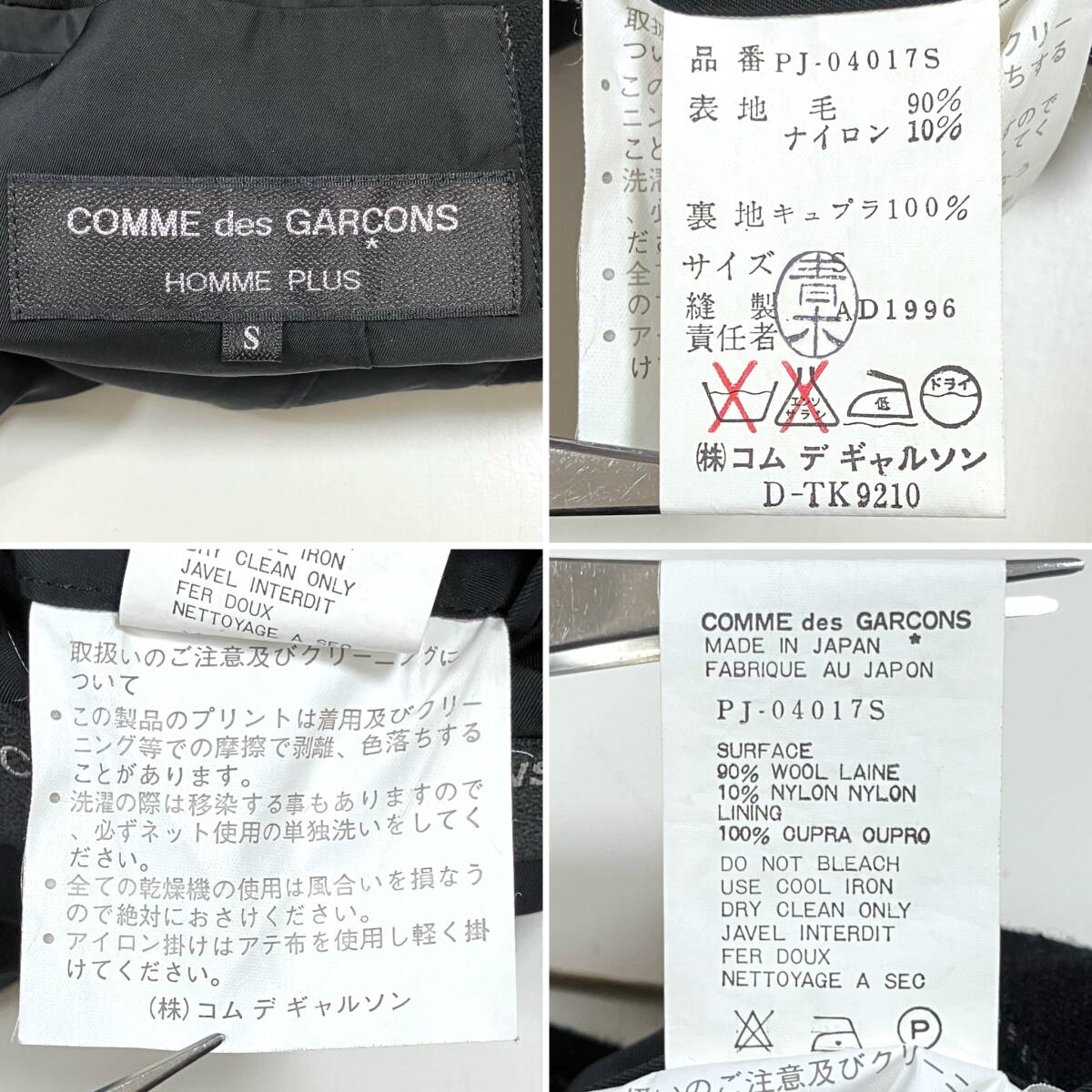AD1996 モッズ期 COMME des GARCONS HOMME PLUS ストライプ ドット プリント ウール ジャケット ブラック系