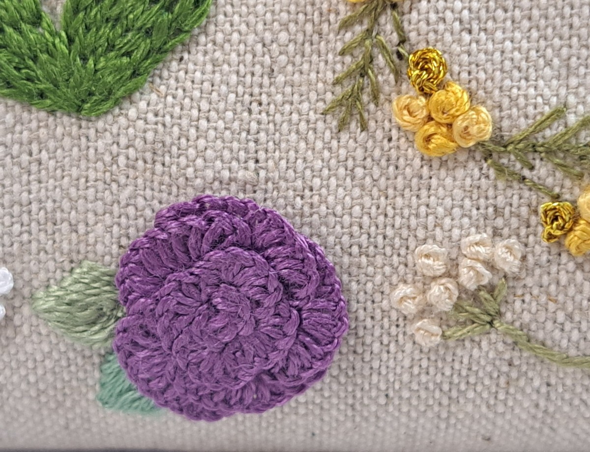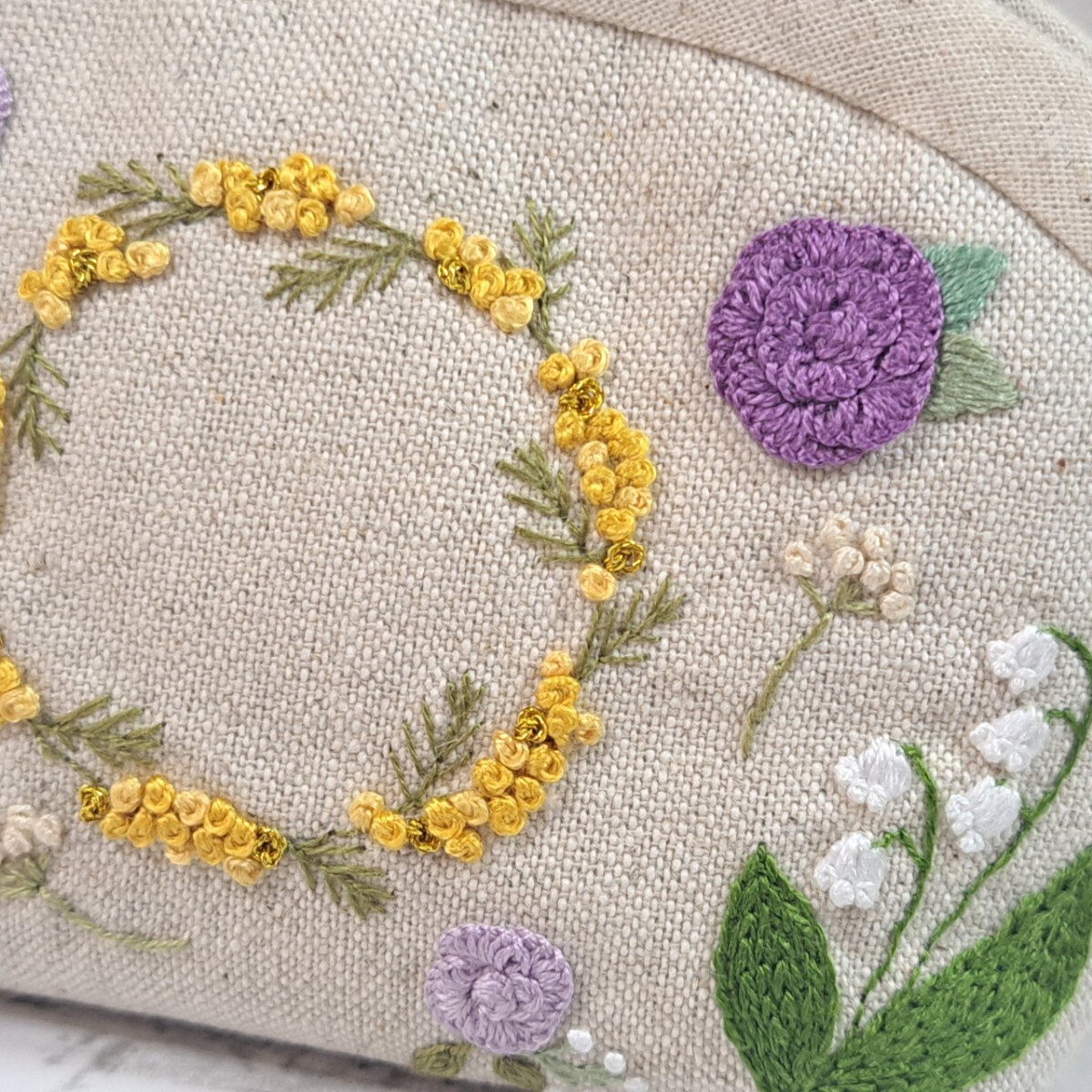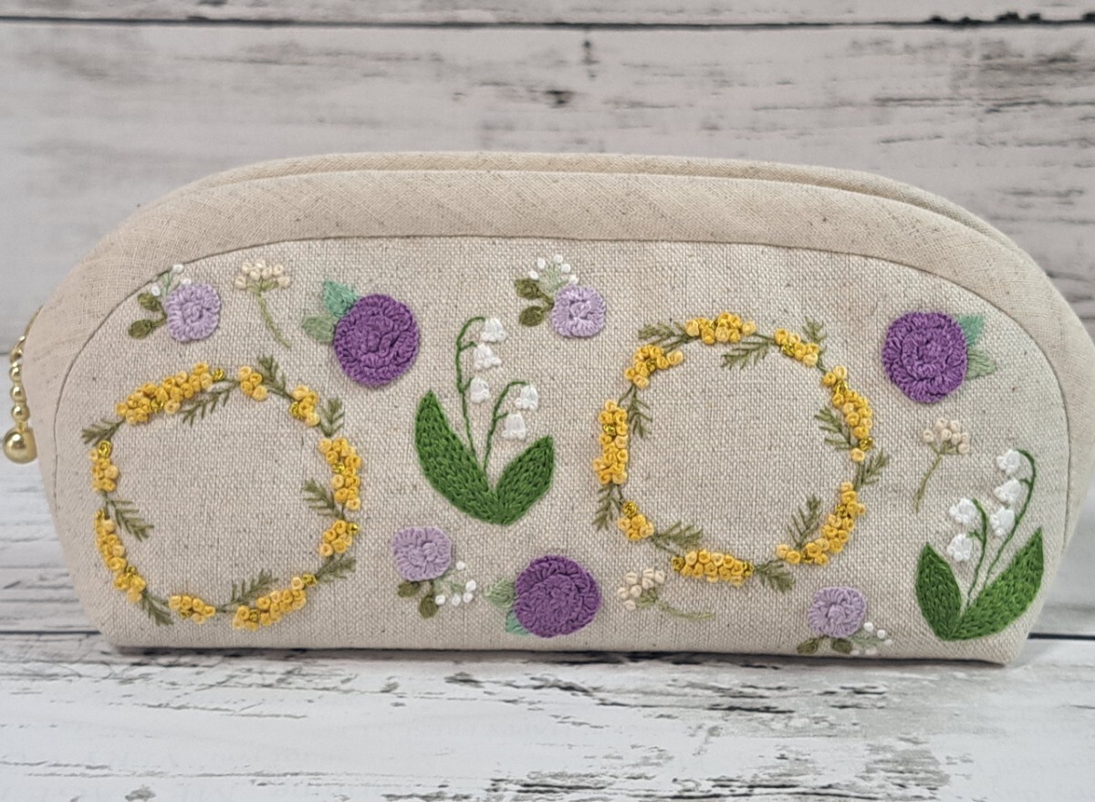 バラとスズラン ミモザの手刺繍入り、メガネケース、ペンケースの出品です。