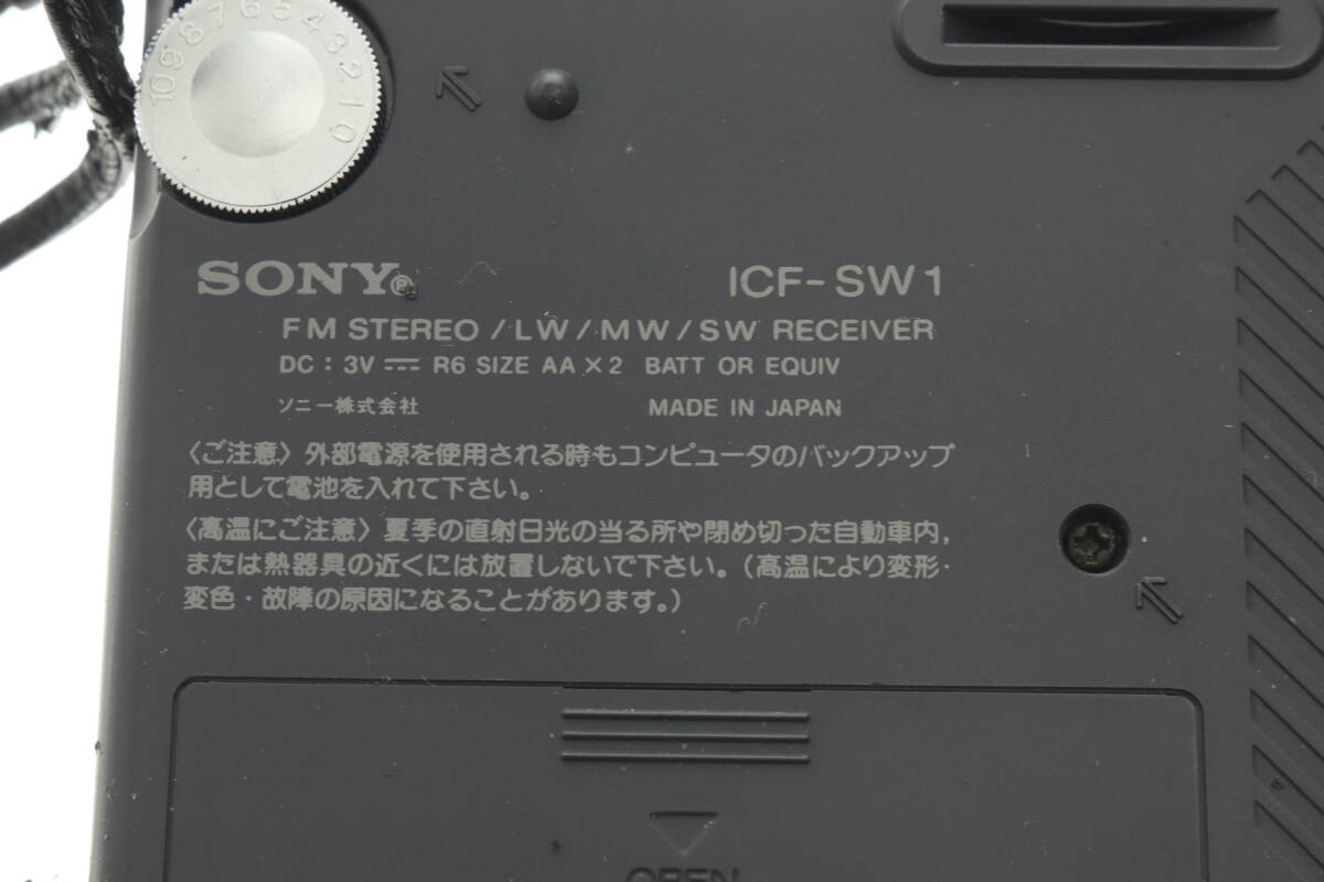 VMPD7-1016-76 SONY ソニー 小型ラジオ ICF-SW1 ラジオ レシーバー ポータブルラジオ アダプター付き 通電確認済み ジャンク
