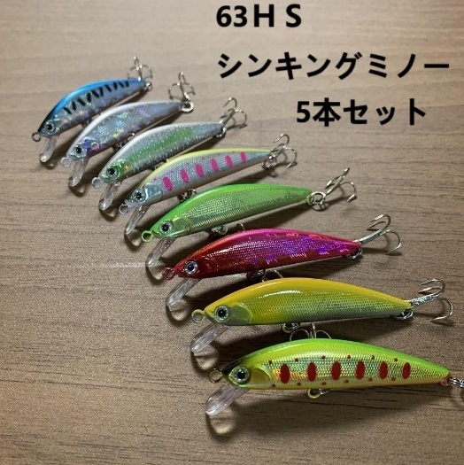 セール!5色セット 63hs 大型トラウト用 D系シンキング ミノー ニジマス コンタクト