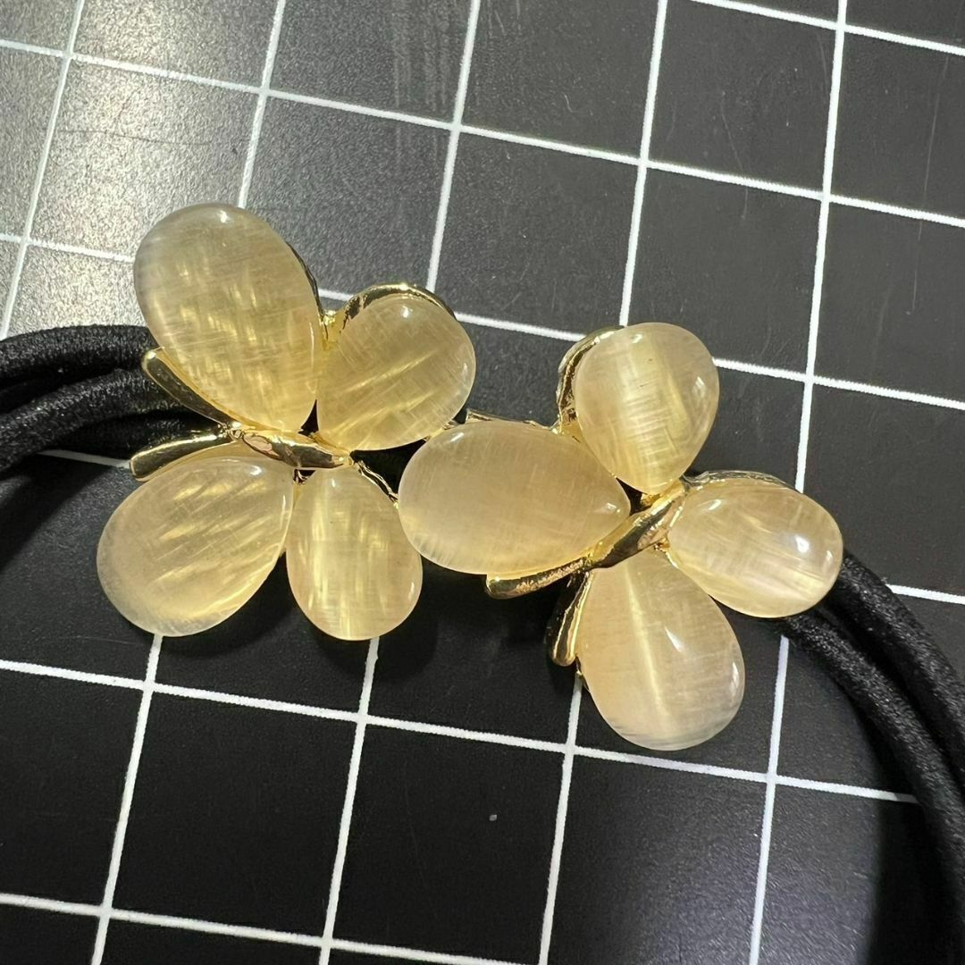 E354 匿名配送 ヘアゴム ダブルバタフライ キャッツアイ 髪ゴム ヘアアクセサリー 一つ結び ハーフアップ