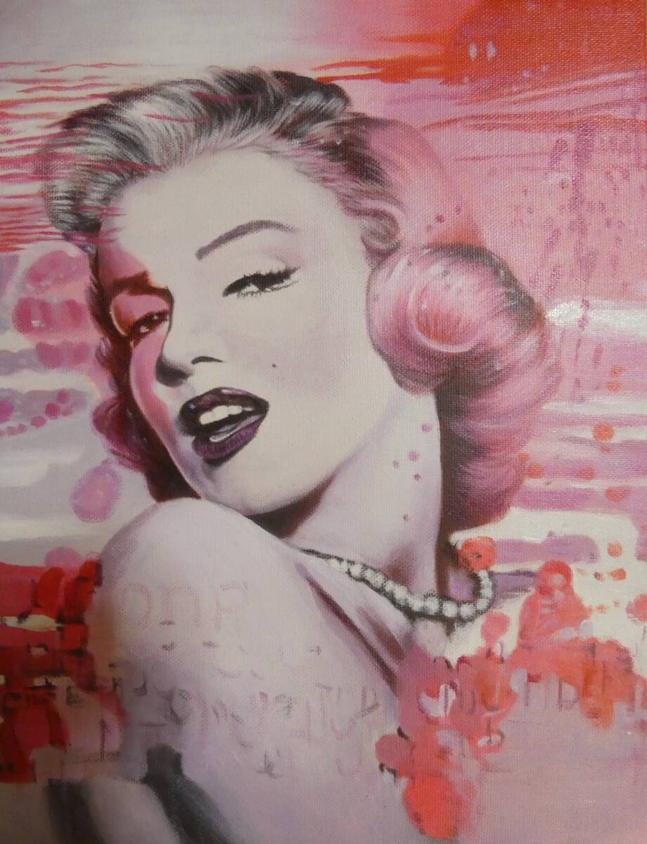 【模写】 油絵  アンディ・ウォーホル 人物画 「モンロー」 サイン 額付き F6号