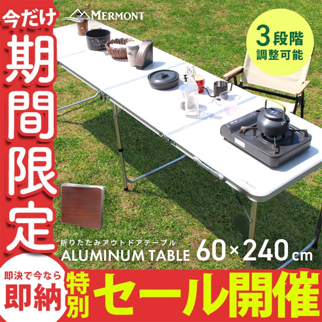 | かんたん組立の折りたたみアウトドアテーブルです。 広々サイズの240cm×60cm!! サビに強いアルミを使用! 天板には防水加工が施されています。 必要のない時は折りたたんで収納できる!! 取っ手付きで持ち運びもラクラク♪ 高さは「ハイスタイル」「ミドルスタイル」「ロースタイル」の3段階調節。 お好みや用途に合わせて使い分けることができる嬉しい仕様♪ キャンプ、バーベキュー、お花見などにとても便利! 【商品仕様】 カラー:ブラウン テーブルサイズ(約):幅240cm×奥行60cm×高さ55cm/62cm/70cm(※高さ3段階調節) 収納サイズ(約):60cm×60cm×13cm 耐荷重(約):30kg 重量(約):9.5kg 材質:アルミニウム 他 【注意事項】 海外製品で簡易梱包での輸入のため風防に擦れや多少の小キズなどがある場合がございますが、商品自体には問題ありませんのでご了承下さい。 |