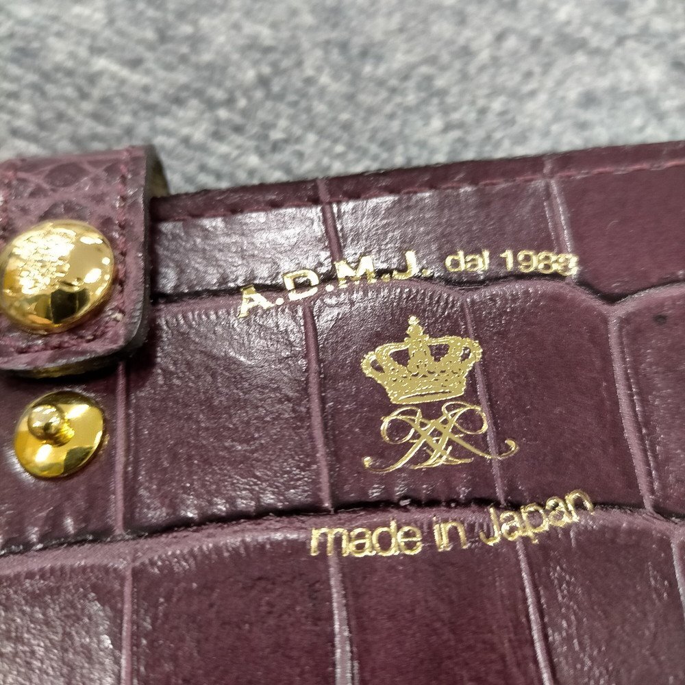 A.D.M.J. 長財布 2点セット カモフラージュ クロコ型押し ボルドー 本革 美品 3608398